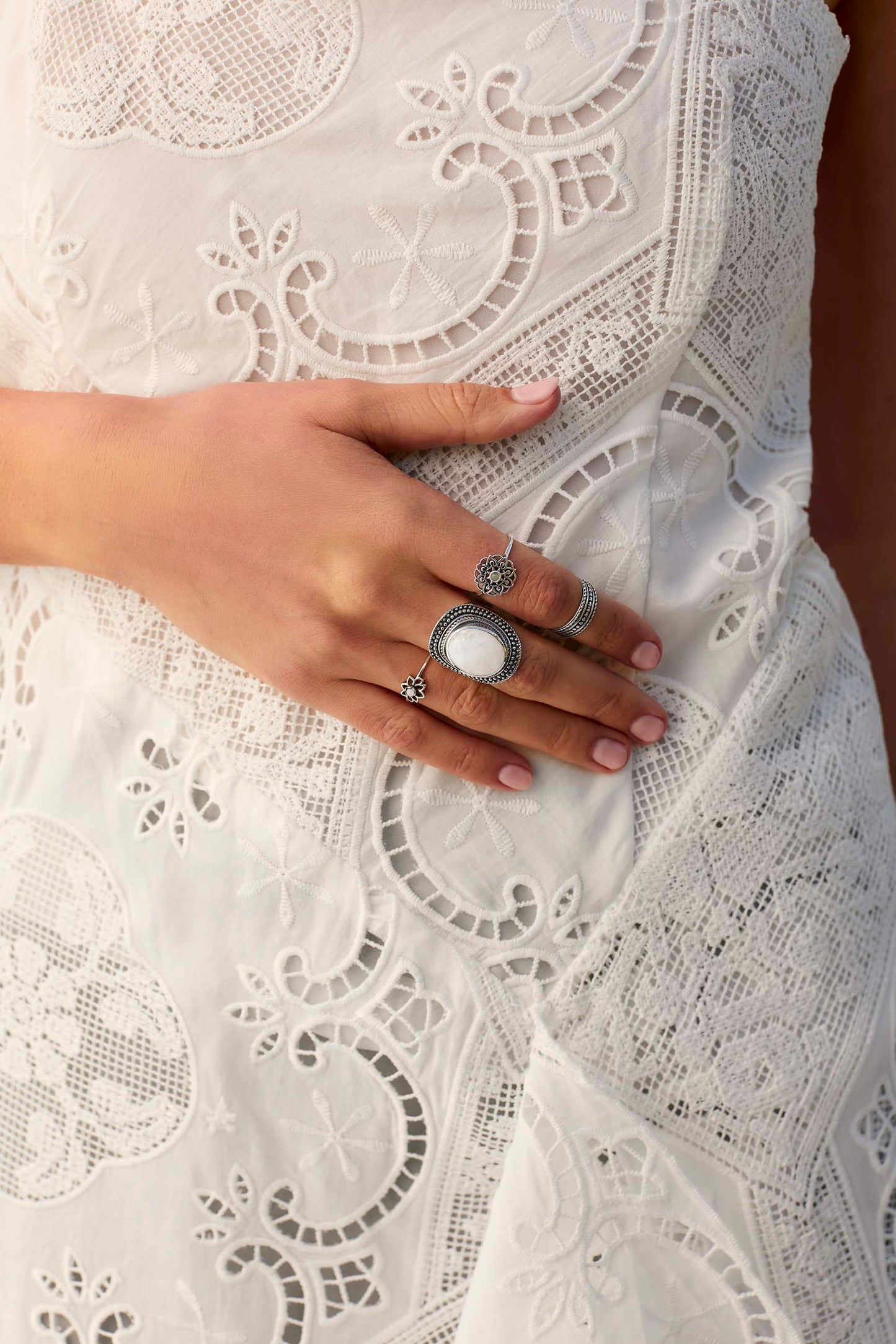 El anillo MRINAL es una pieza elegante y bonita de piedra luna y Plata de ley 925. Esta joyita hecha a mano destaca por su piedra natural, convirtiéndose en un complemento perfecto e imprescindible