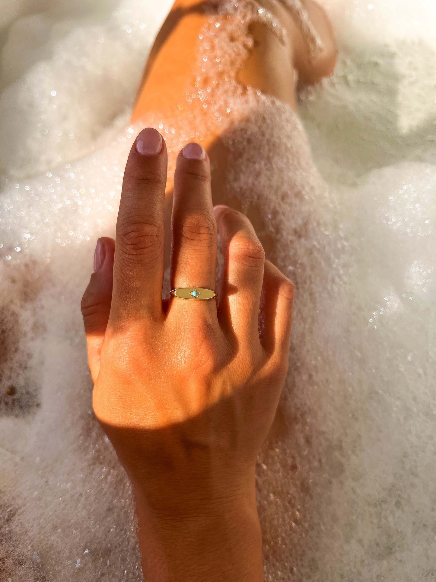 El anillo CAELUM destaca por tener un diseño sencillo pero elegante. Tiene una pequeña piedra turquesa en el centro que simboliza a un sol.