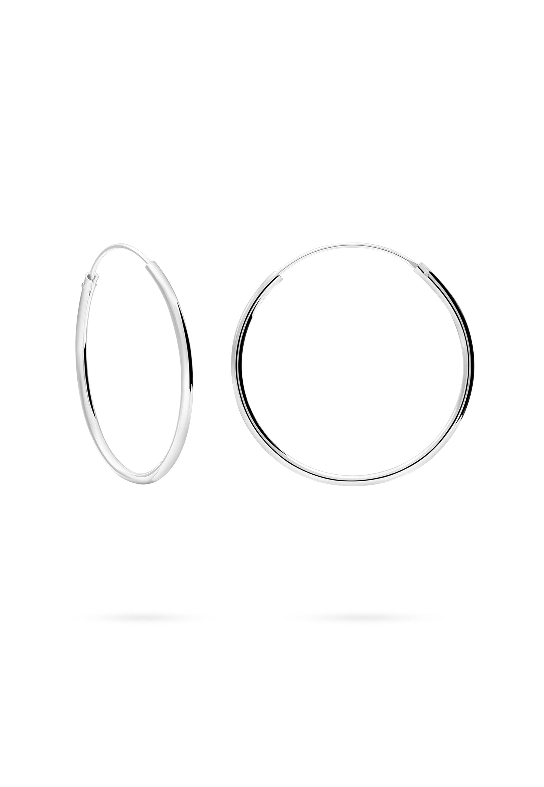 Los pendientes JIVANA (30mm) son unos aros lisos de Plata de Ley de tamaño grande con un diámetro de 30mm. A pesar de sus dimensiones son supercómodos y ligeros.