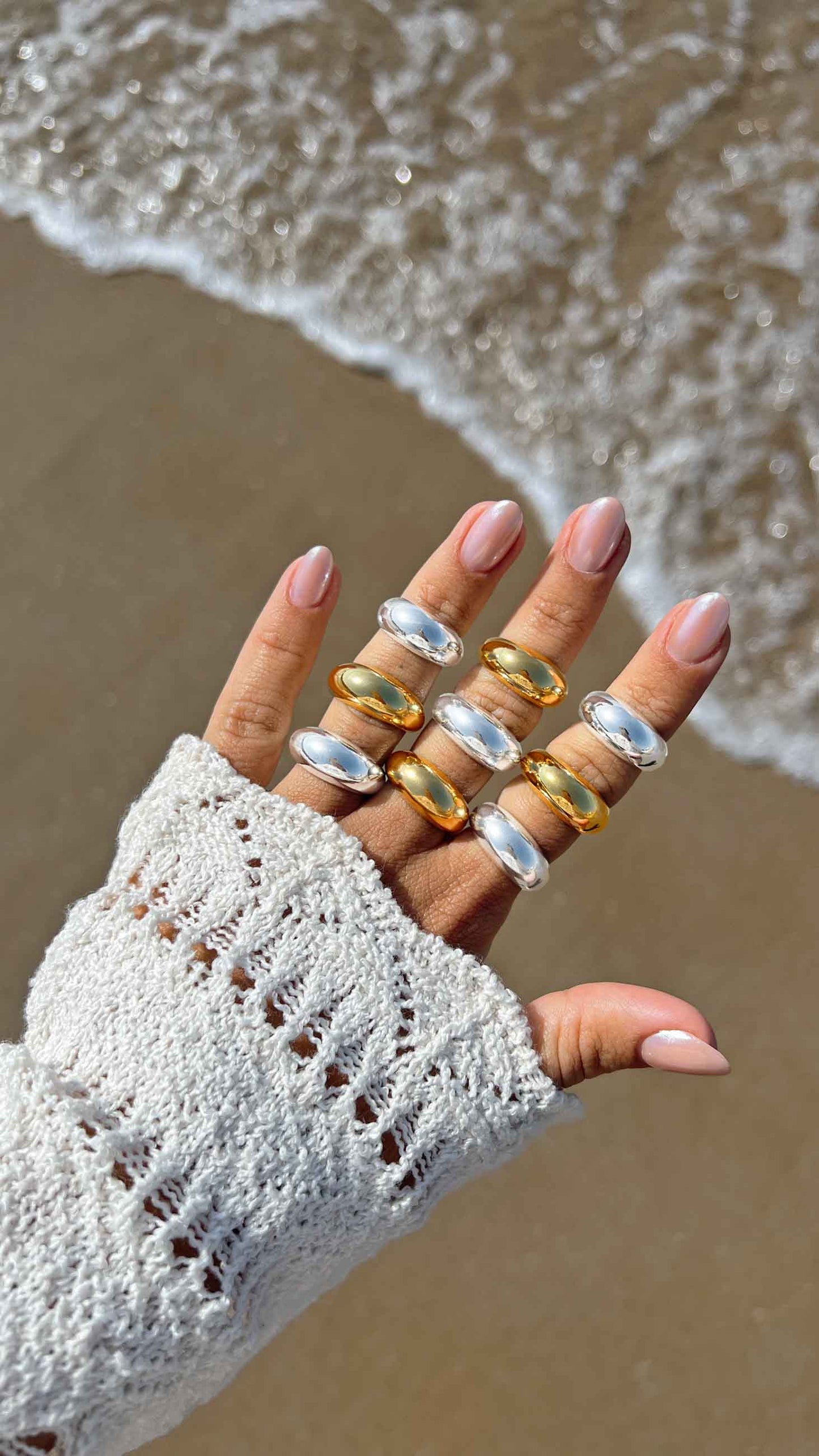 También tenemos anillos midi y para el pie. Sirven tanto para los dedos del pie como para ponerlos en medio dedo, ¡incluso depende qué talla tengas puede servirte de anillo normal! Estos anillos son de talla S que corresponde a una 4, y M que corresponde a una 6.