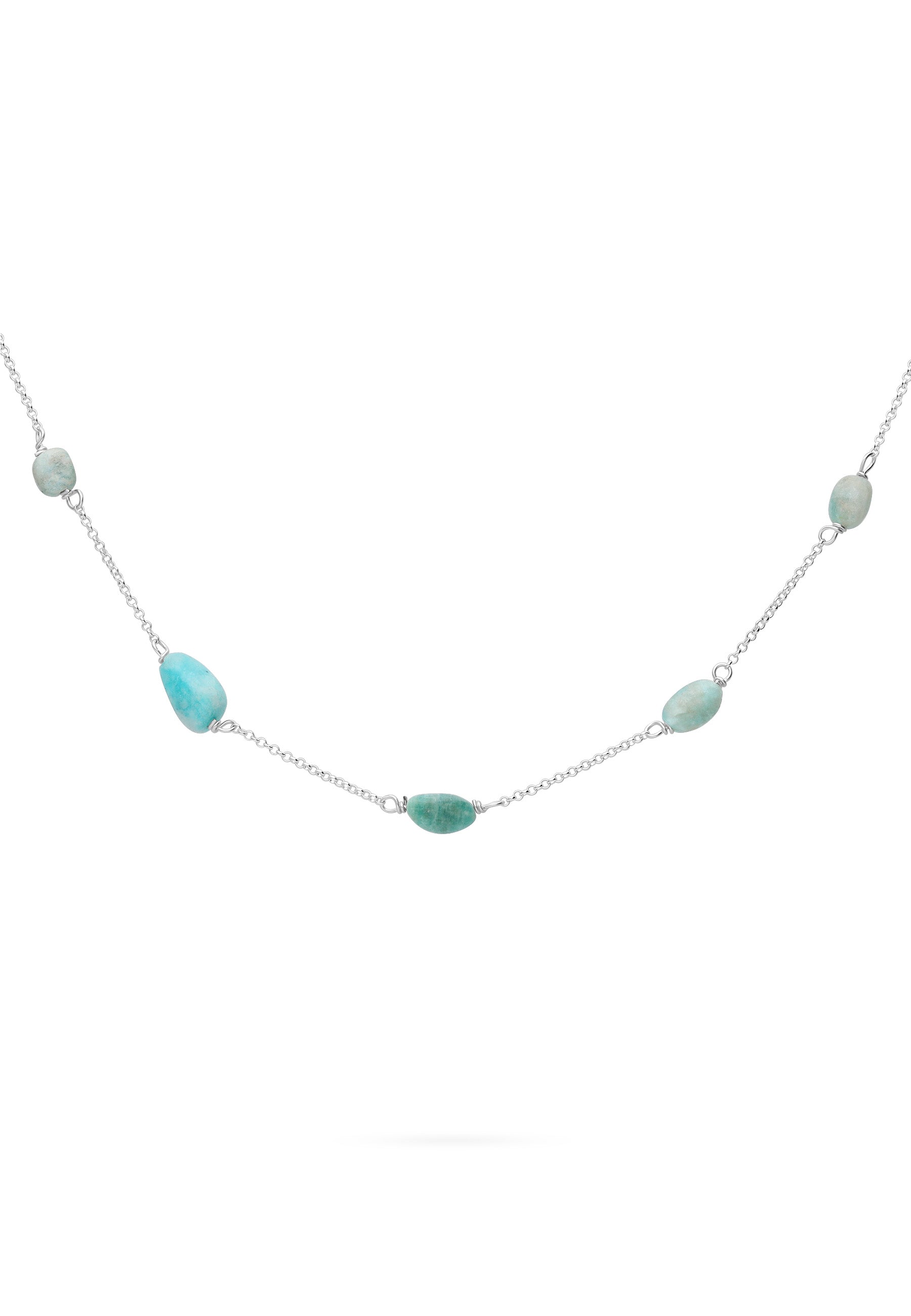 Este collar Kundan de plata de ley 925 es la elección perfecta si estás buscando un collar sutil para llevar en cualquier ocasión, además añade un tono de color a tu cuello con las amazonitas verdes.