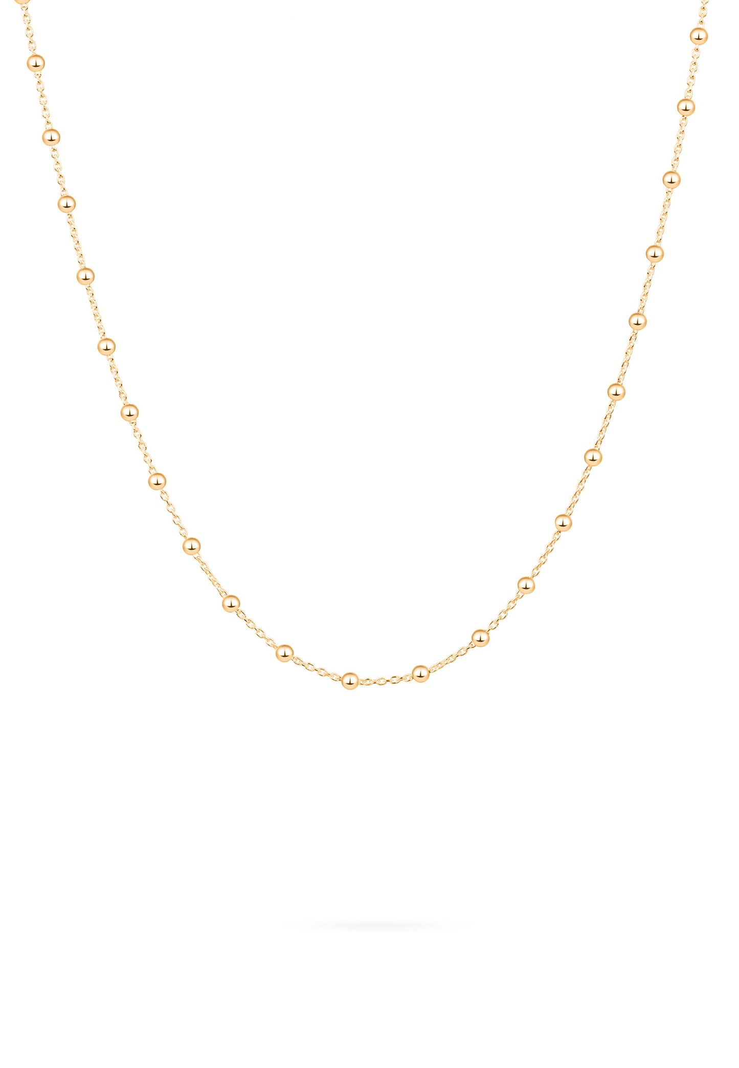 El diseño del UDAY BAÑADO EN ORO está formado por una cadenita fina con pequeñas bolitas de 2,5 mm de diámetro. Todas ellas con la misma separación entre sí.