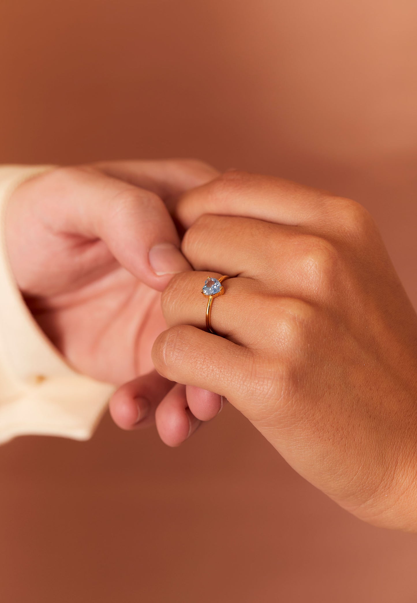 El pack Abhijit combina el anillo de plata de ley 925 bañado en oro con una elegante circonita azul en forma de corazón, junto a un estuche hexagonal de terciopelo beige que realza su sofisticación. Este conjunto es el regalo perfecto para expresar amor y emociones especiales en cualquier ocasión.