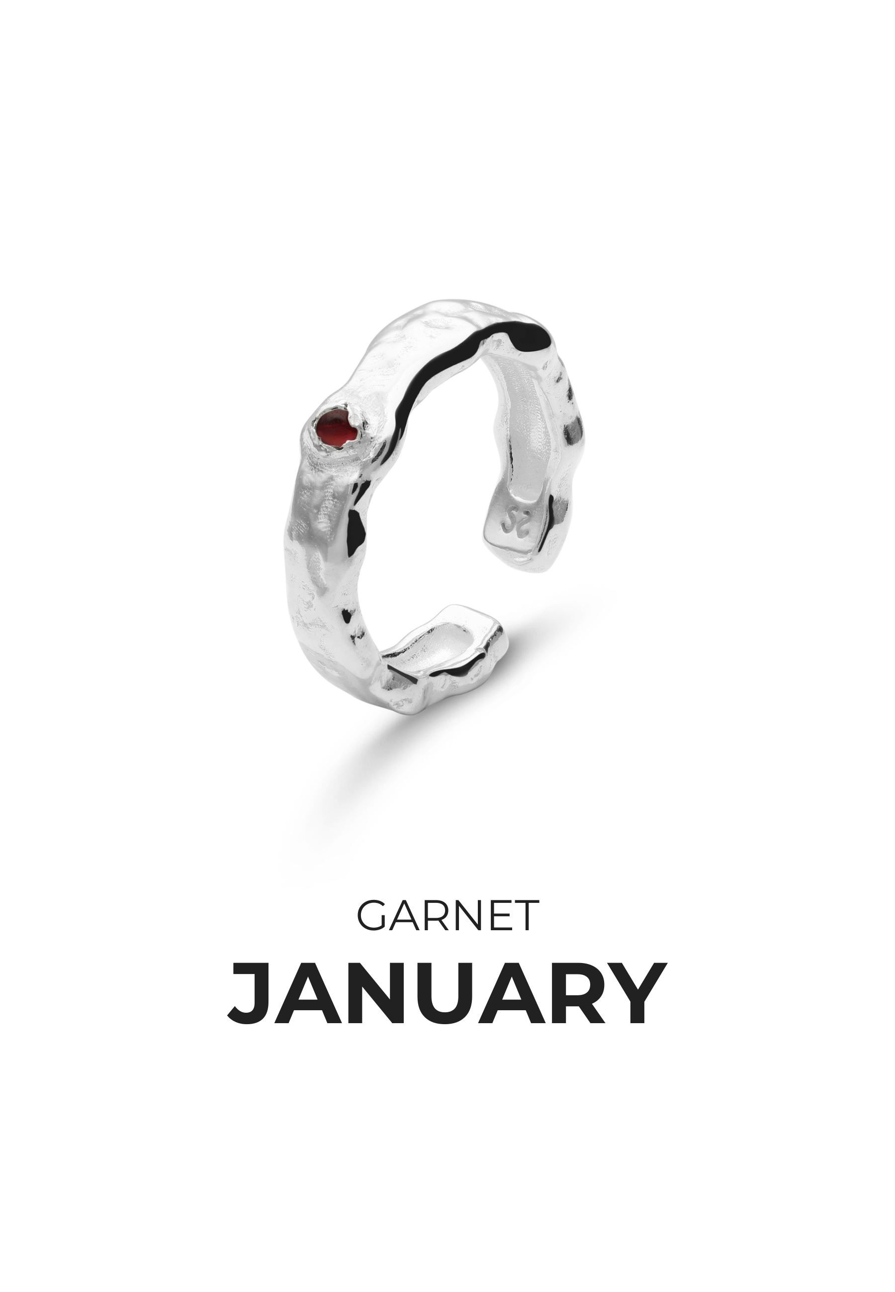 El Anillo Piedras de Nacimiento está elaborado en plata de ley 925 con un diseño redondo y un elegante efecto derretido en su superficie. En el centro se incrusta la piedra de nacimiento correspondiente a cada mes, aportando color y simbolismo a la pieza. Gracias a su estilo atemporal y versátil, se adapta a cualquier look y ocasión.