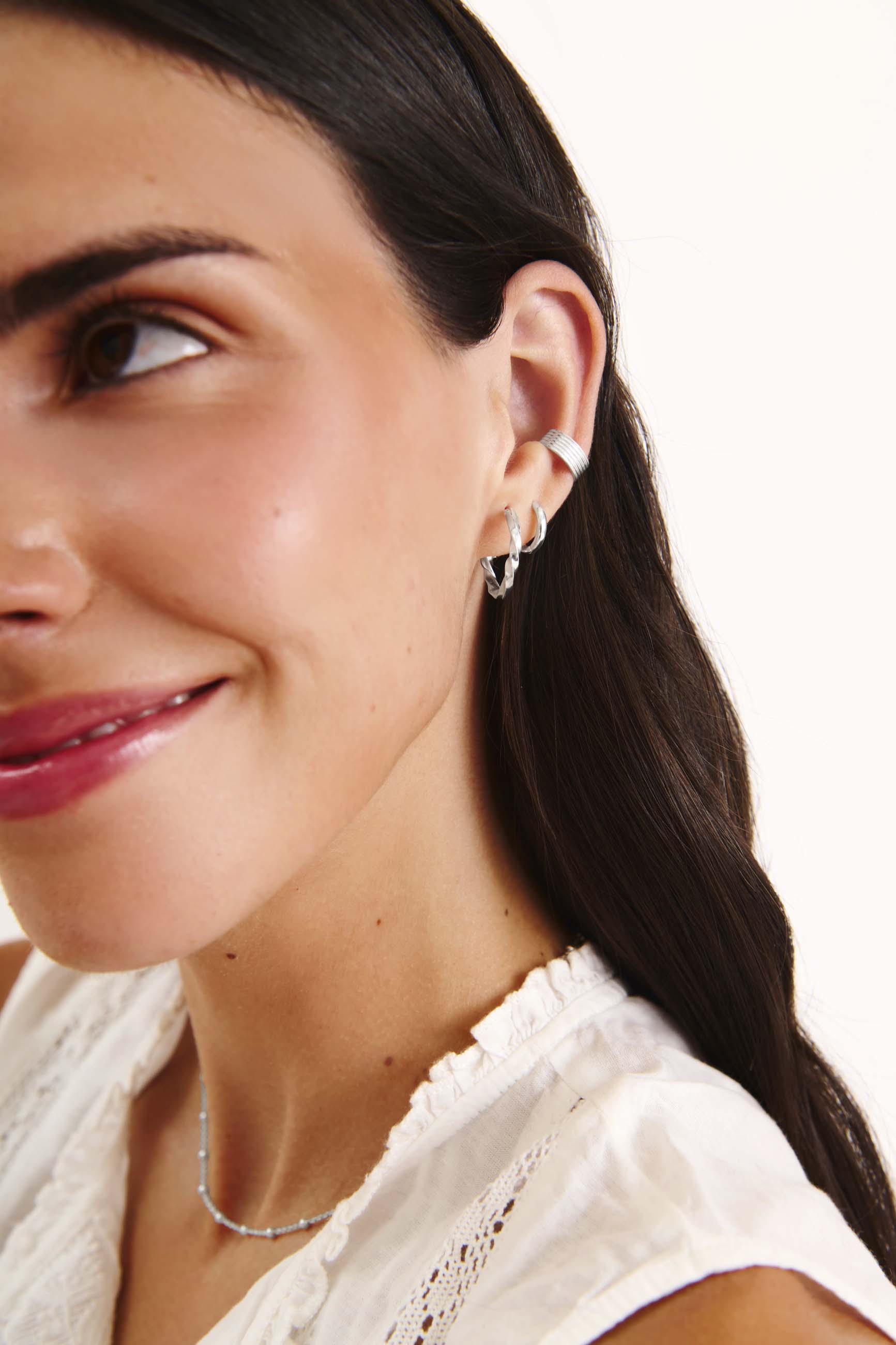 Los pendientes ANOOP (20mm) son unos aritos de Plata de Ley 925 con un relieve bastante marcado y precioso, el cual desencadena un juego de sombras y brillo superbonito. Su tamaño es entre pequeño y mediano.