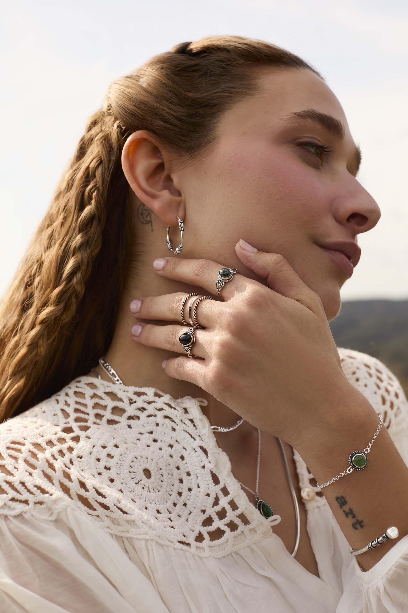 Usa tus joyas con frecuencia y no te preocupes por actividades cotidianas como ducharte, bañarte en el mar, perfumarte o hacer deporte. Si la plata se oscurece, ¡se puede limpiar!