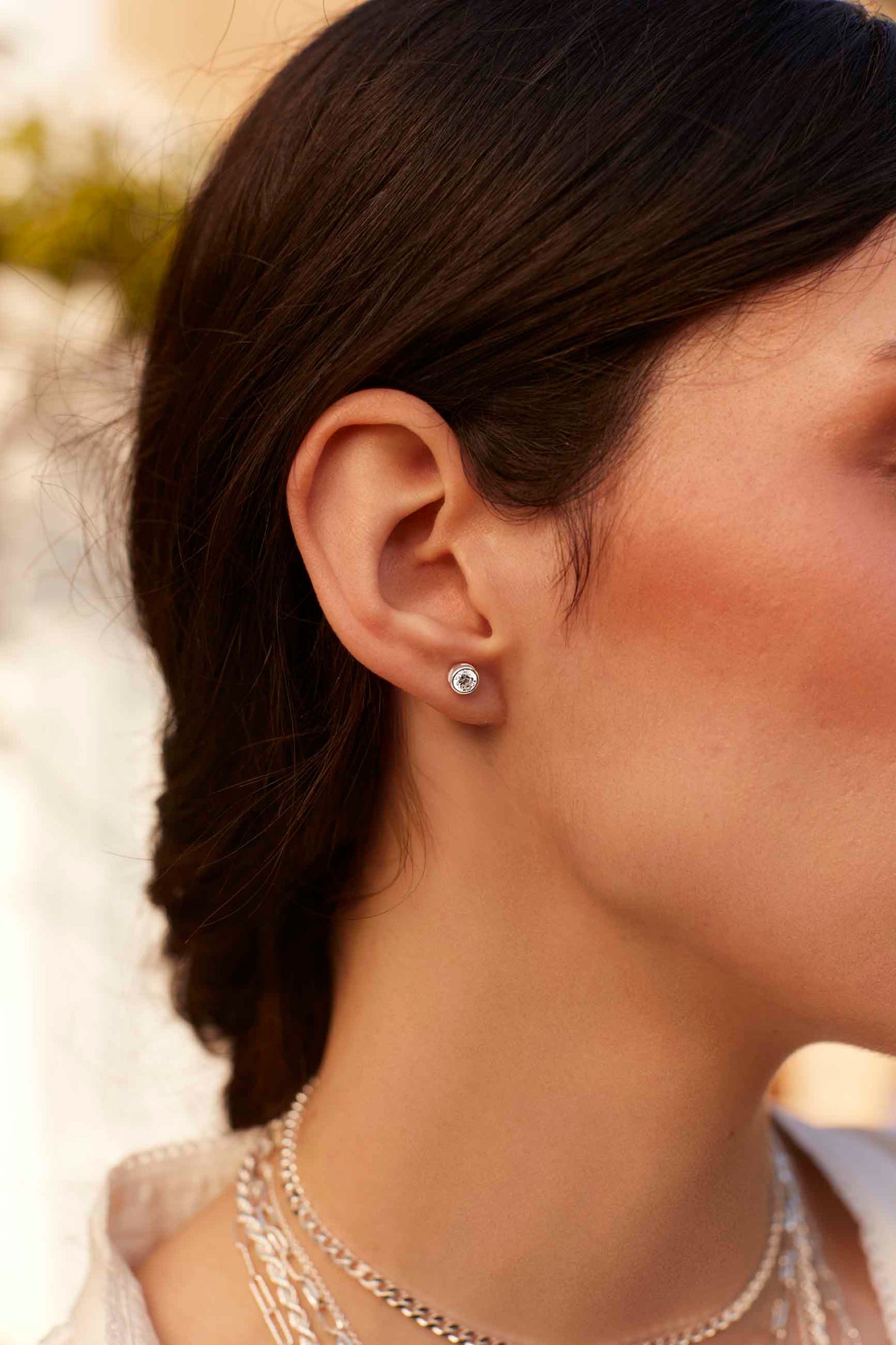Los pendientes USHA tienen forma de circulito con una circonita natural en el centro. El tamaño de los USHA es pequeño, pero su piedra natural y su bonito brillo, llamarán mucho la atención e iluminarán tu orejita.