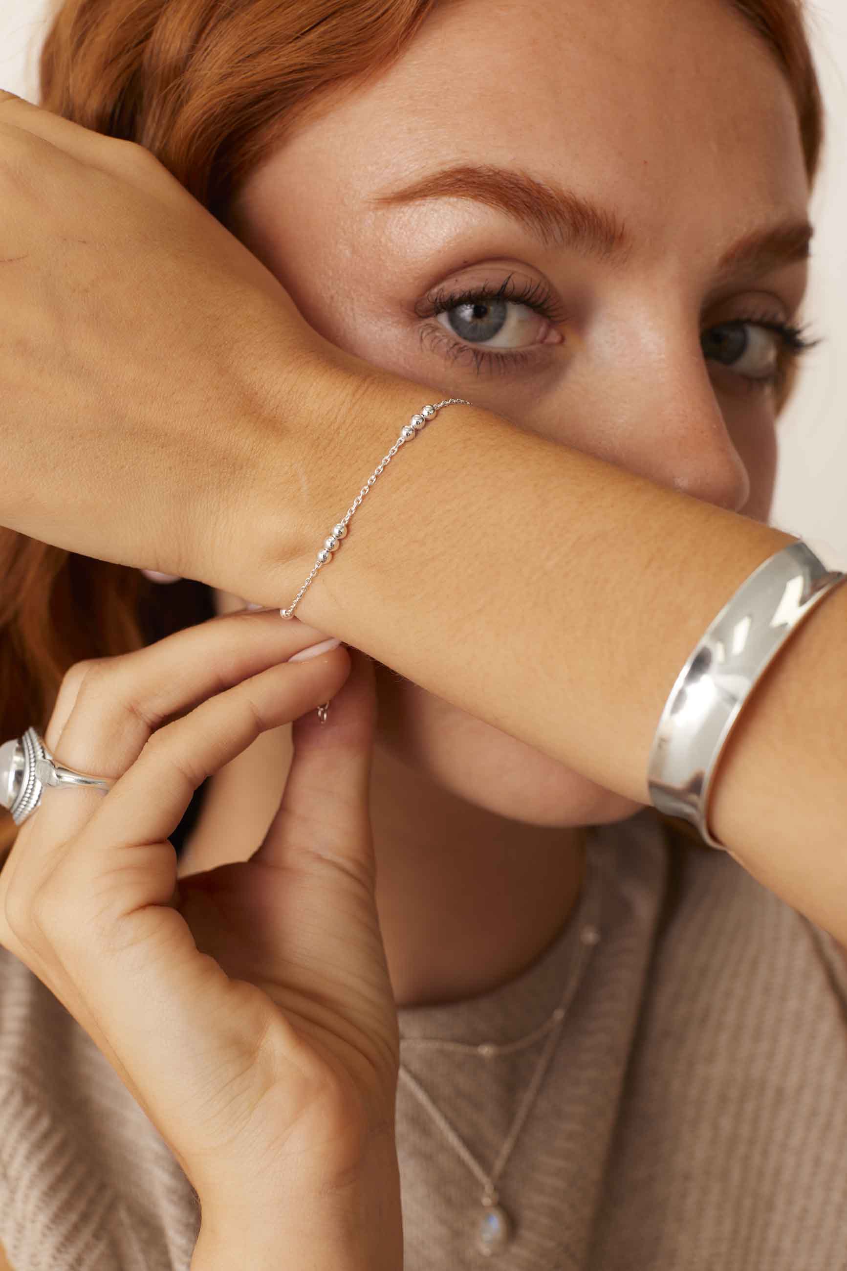 TIKA está formada por una cadena fina y agrupaciones de bolitas de plata repartidas uniformemente por toda la pieza. Su diseño es ideal para lucirlo diariamente.