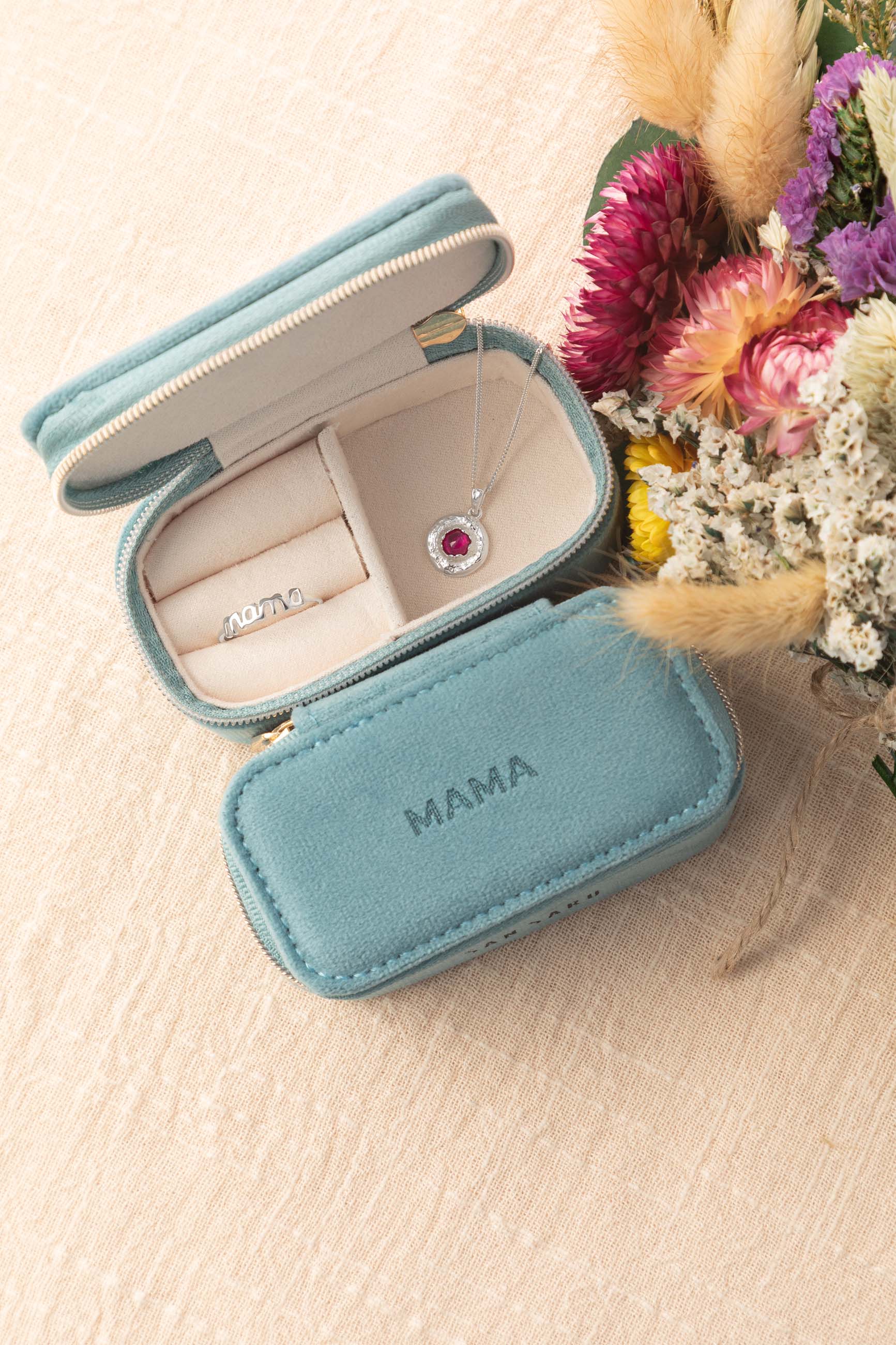 Schütze deinen Schmuck stilvoll mit dieser charmanten Shanaya-Schmuckschatulle aus blaugrünem Samt. Ihre weiche Textur und die exquisite Farbe schaffen eine luxuriöse und elegante Atmosphäre für deine wertvollsten Schätze. Trotz ihrer kompakten Größe ist sie überraschend geräumig und bietet einen sicheren Ort, um deine Lieblingsstücke aufzubewahren – auch auf Reisen.