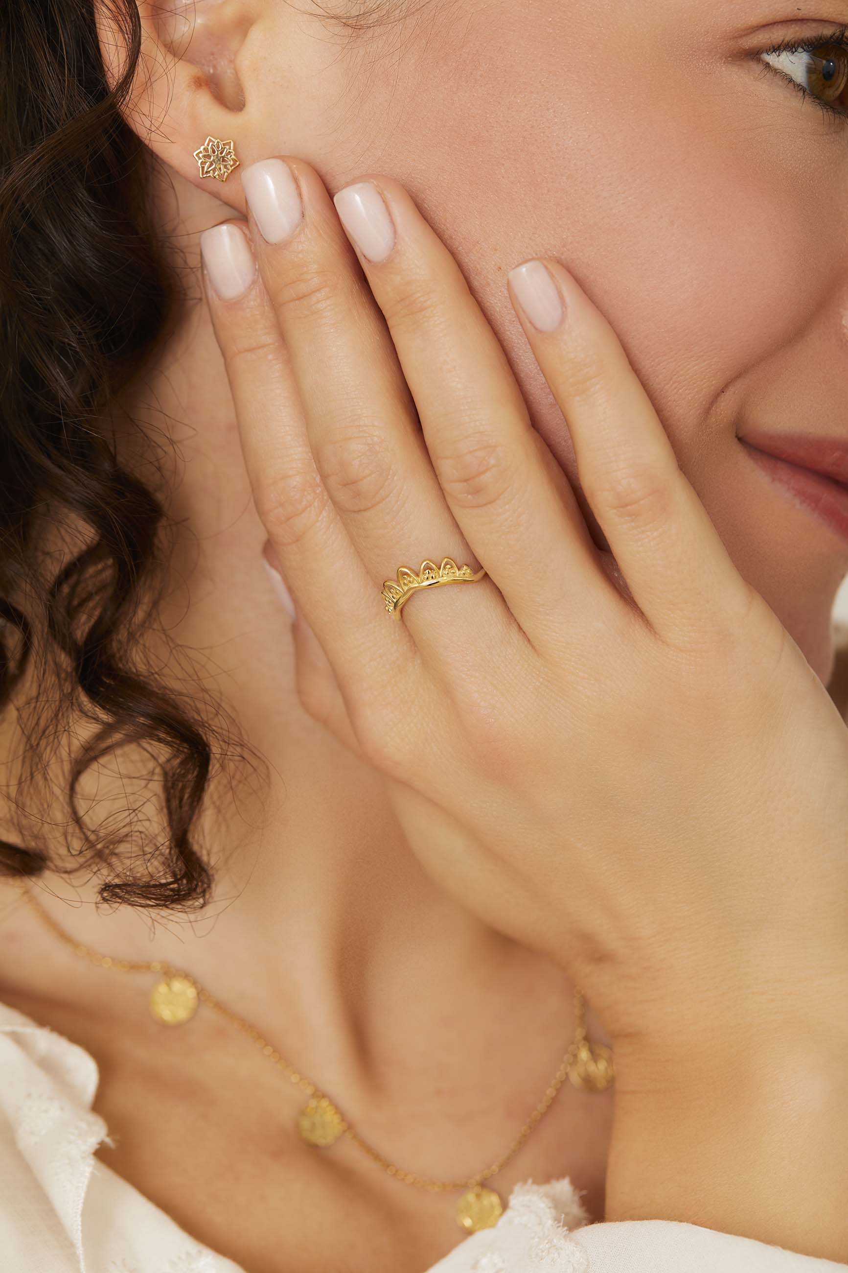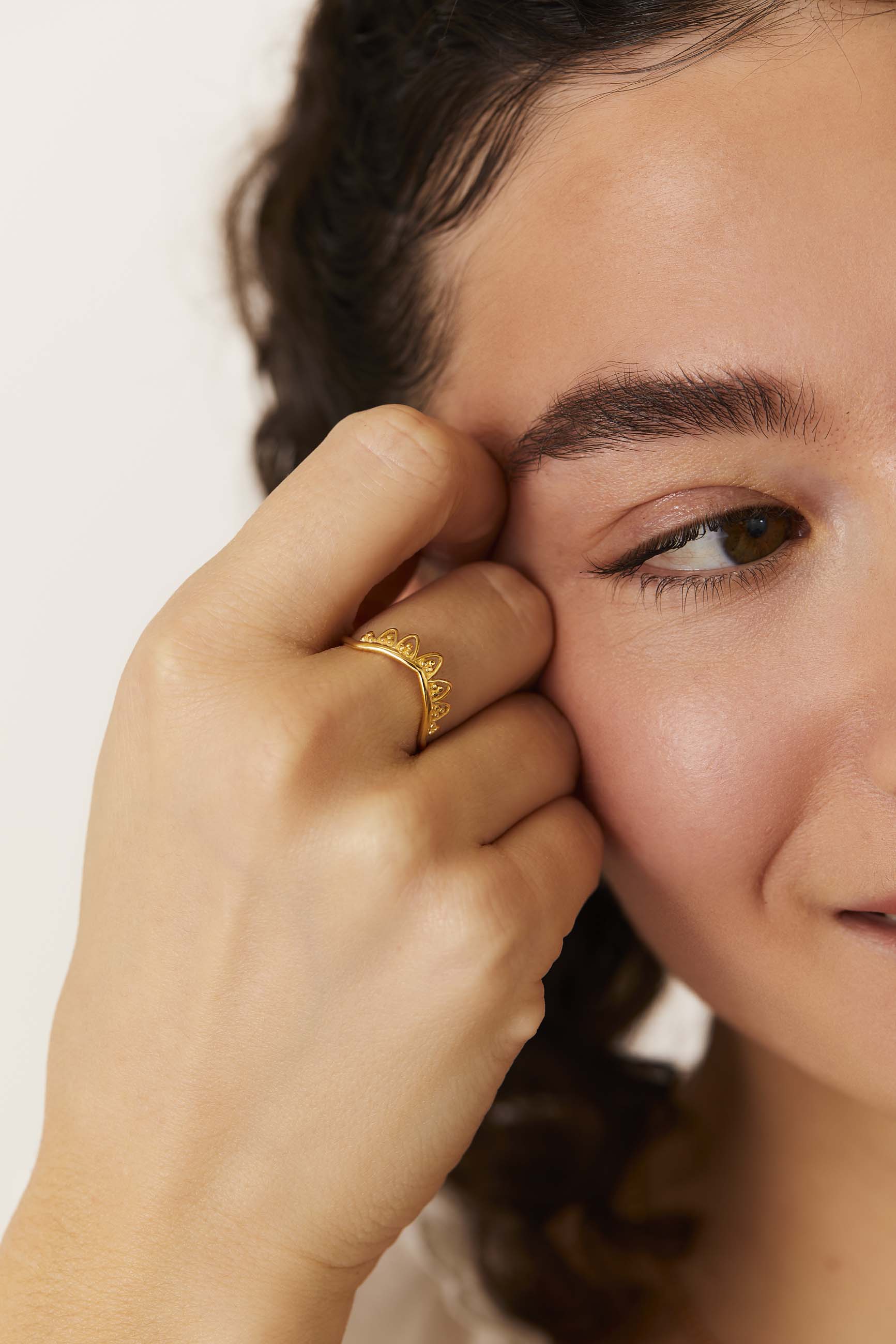 Ring mit halber Mandala-Blume aus Gold Ausat