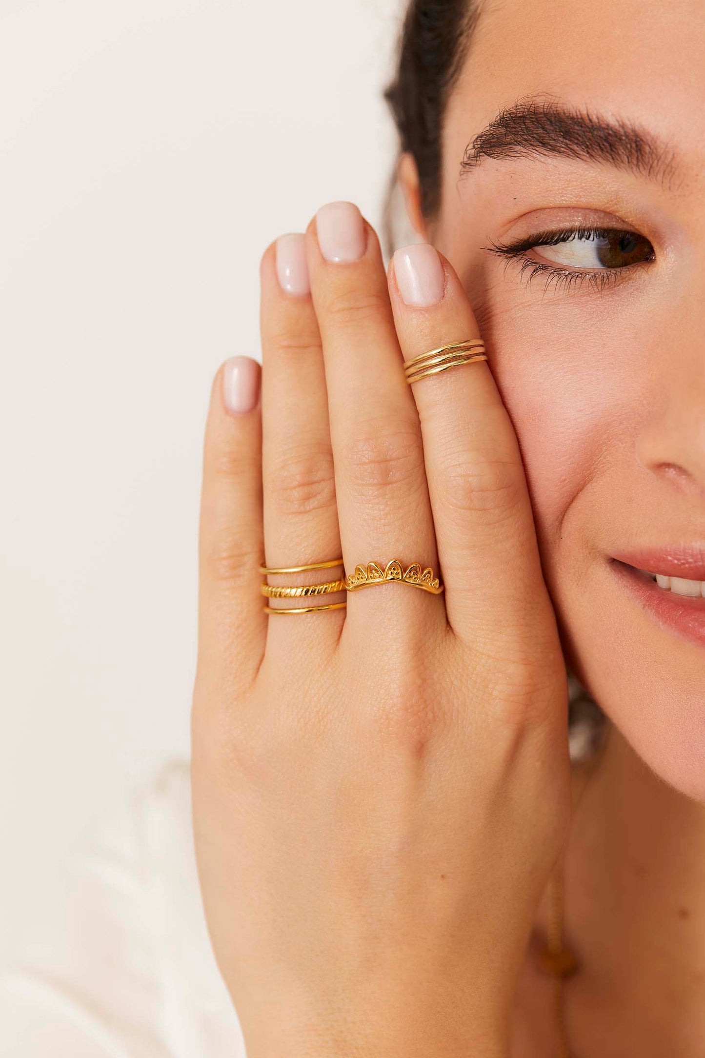 Wenn du denselben Ring an mehreren Fingern tragen möchtest, haben wir auch verstellbaren Ringe. Diese Ringe passen auf verschiedene Fingergrößen, so dass du deine Größe nicht wissen musst! Jeder verstellbare Ring passt auf die eine oder andere Größe, in der Beschreibung jedes Produkts siehst du, welche Größen sie erreichen können.