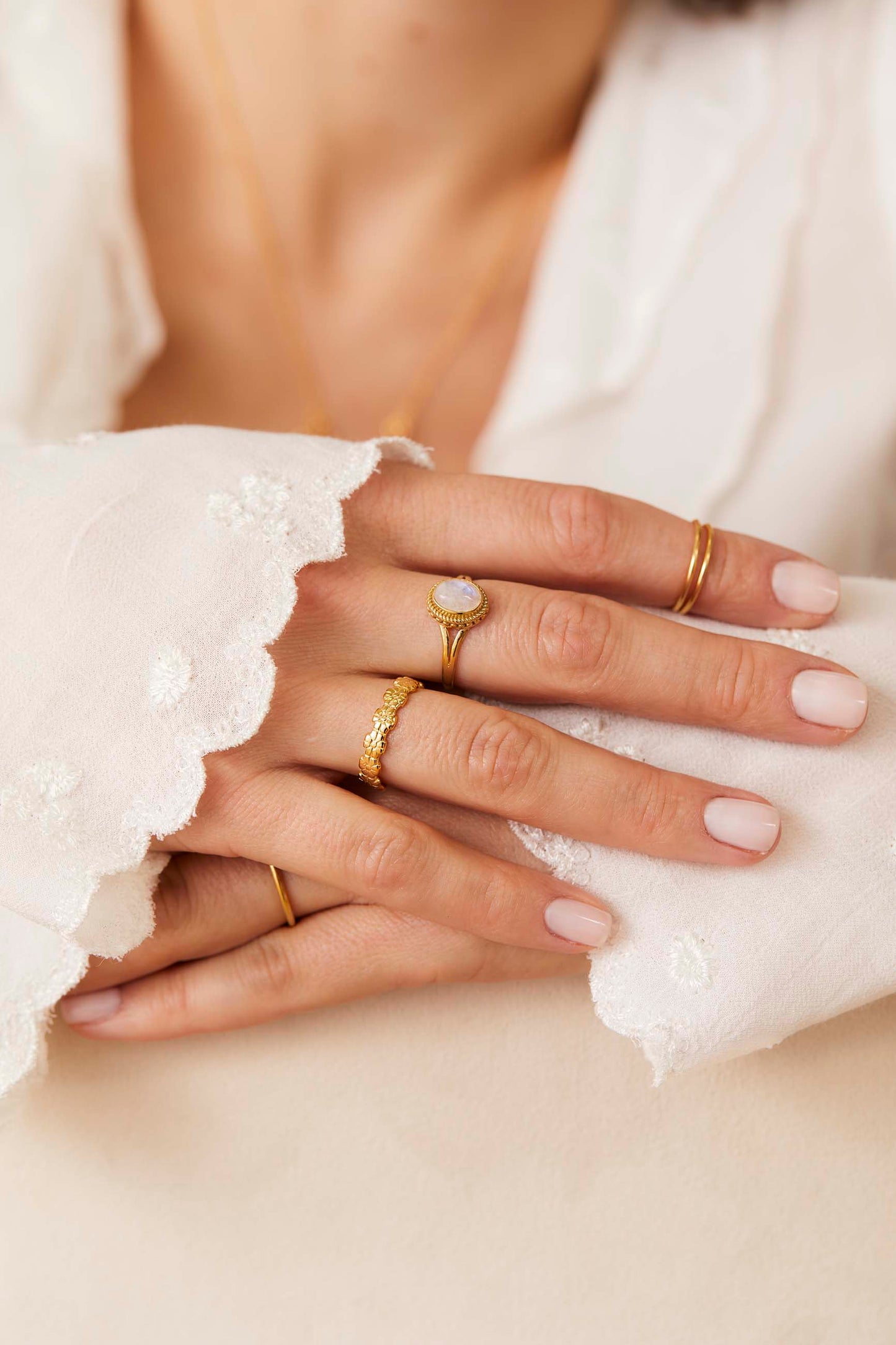 Der SHILA GOLD ist ein sehr sorgfältig handgefertigter Ring. Du wirst seinen Mondstein lieben.