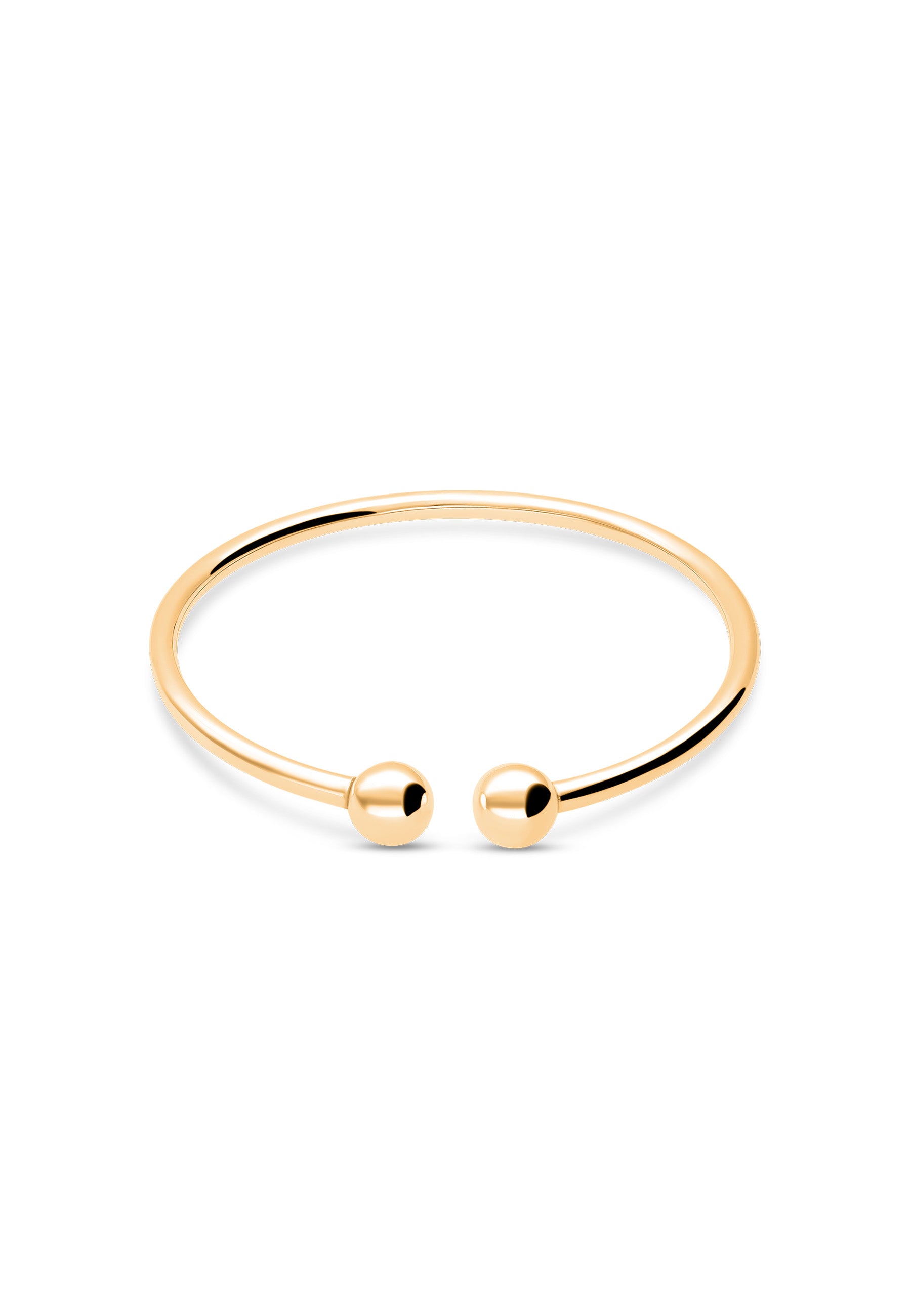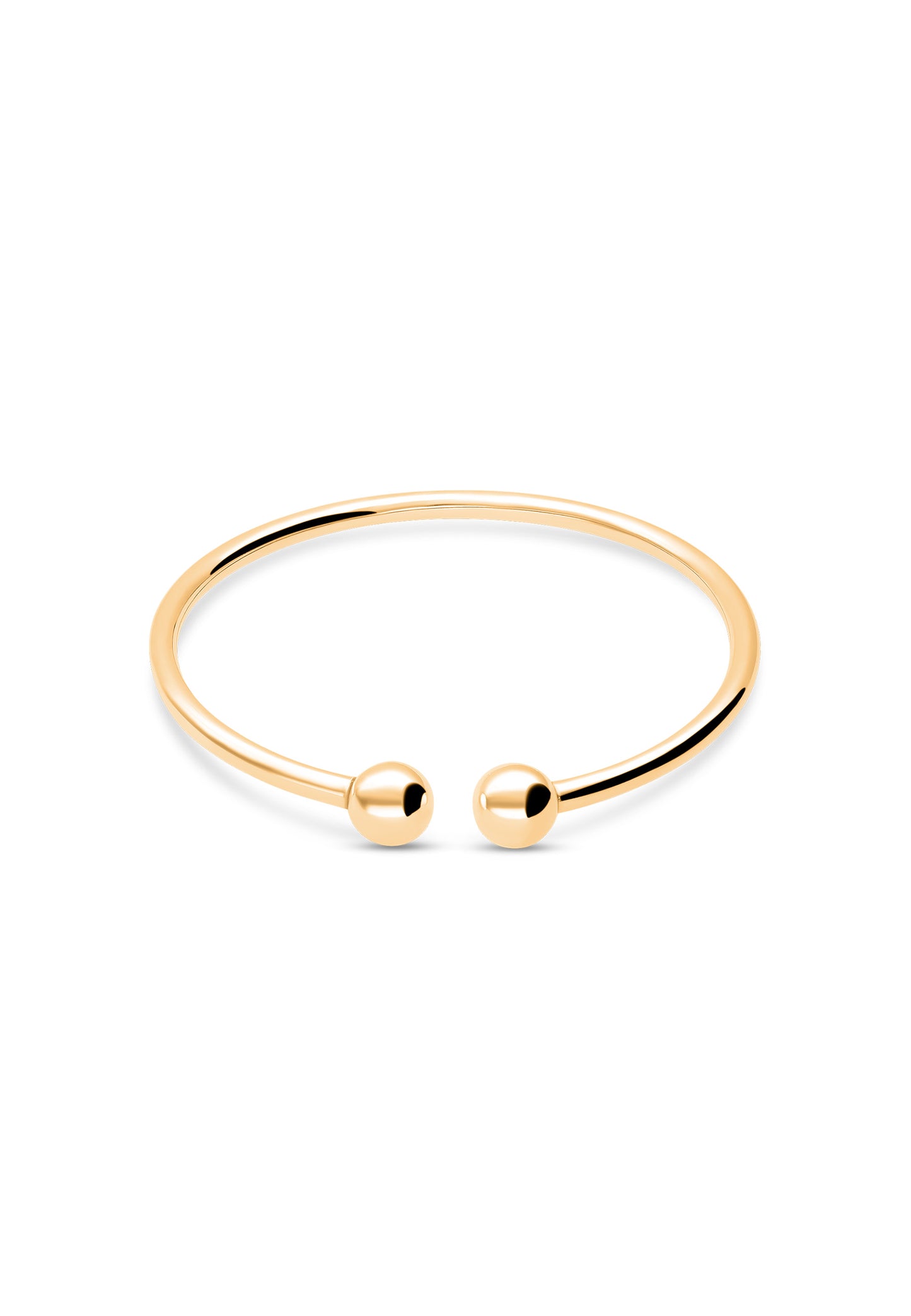 Das Armband MALTI GOLD ist eines unserer elementarsten Schmuckstücke. Sein Design zeichnet sich durch seine zwei großen Kugeln an den Enden aus. Und es hat kein Relief oder Detail, es ist komplett glatt!
