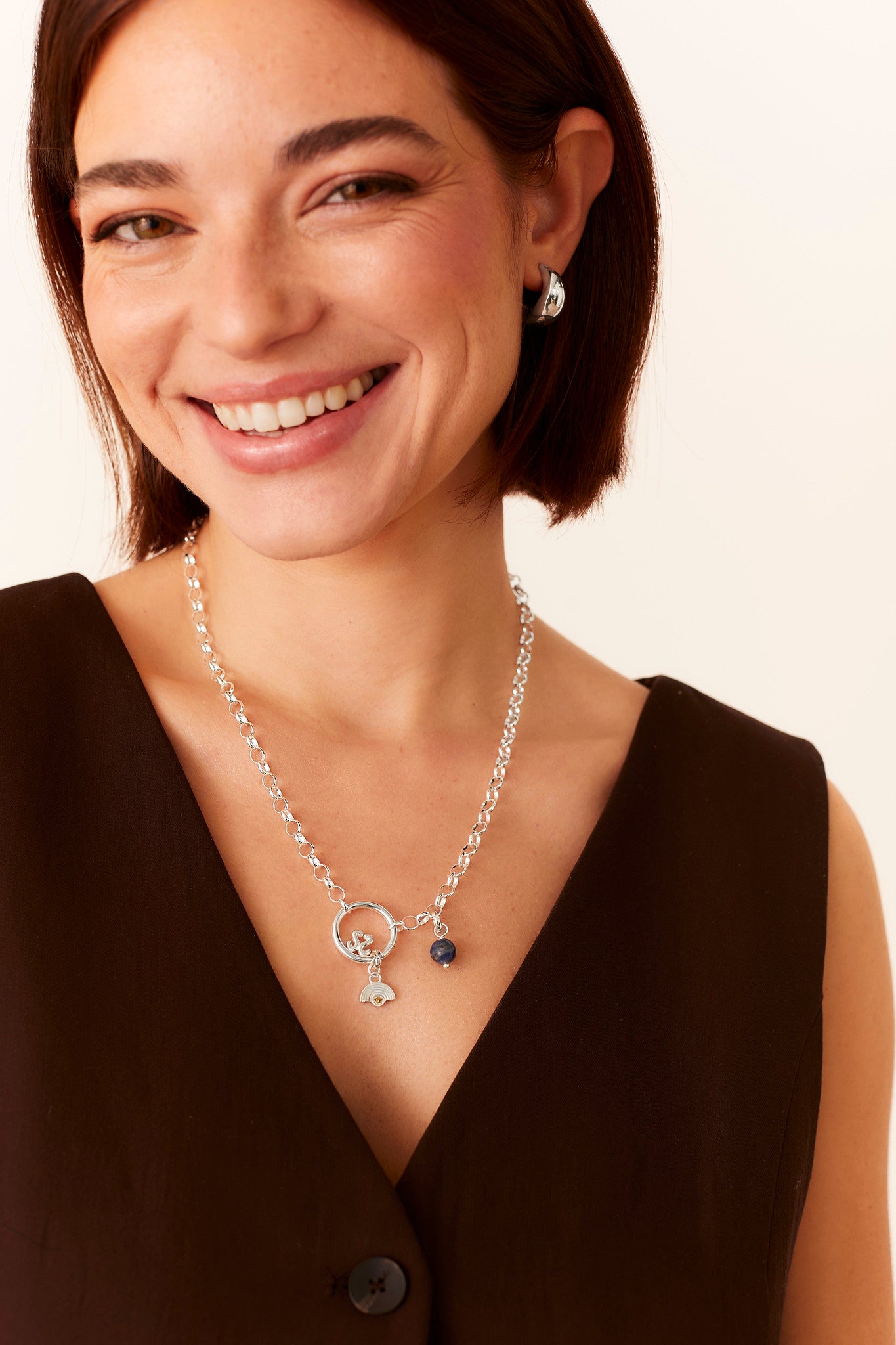 Diese Kette ist ideal zum Kombinieren mit unseren Charms, sodass du eine einzigartige Halskette kreieren kannst, die deinen persönlichen Stil widerspiegelt. Personalisiere deinen Look mit Stücken, die hervorstechen.