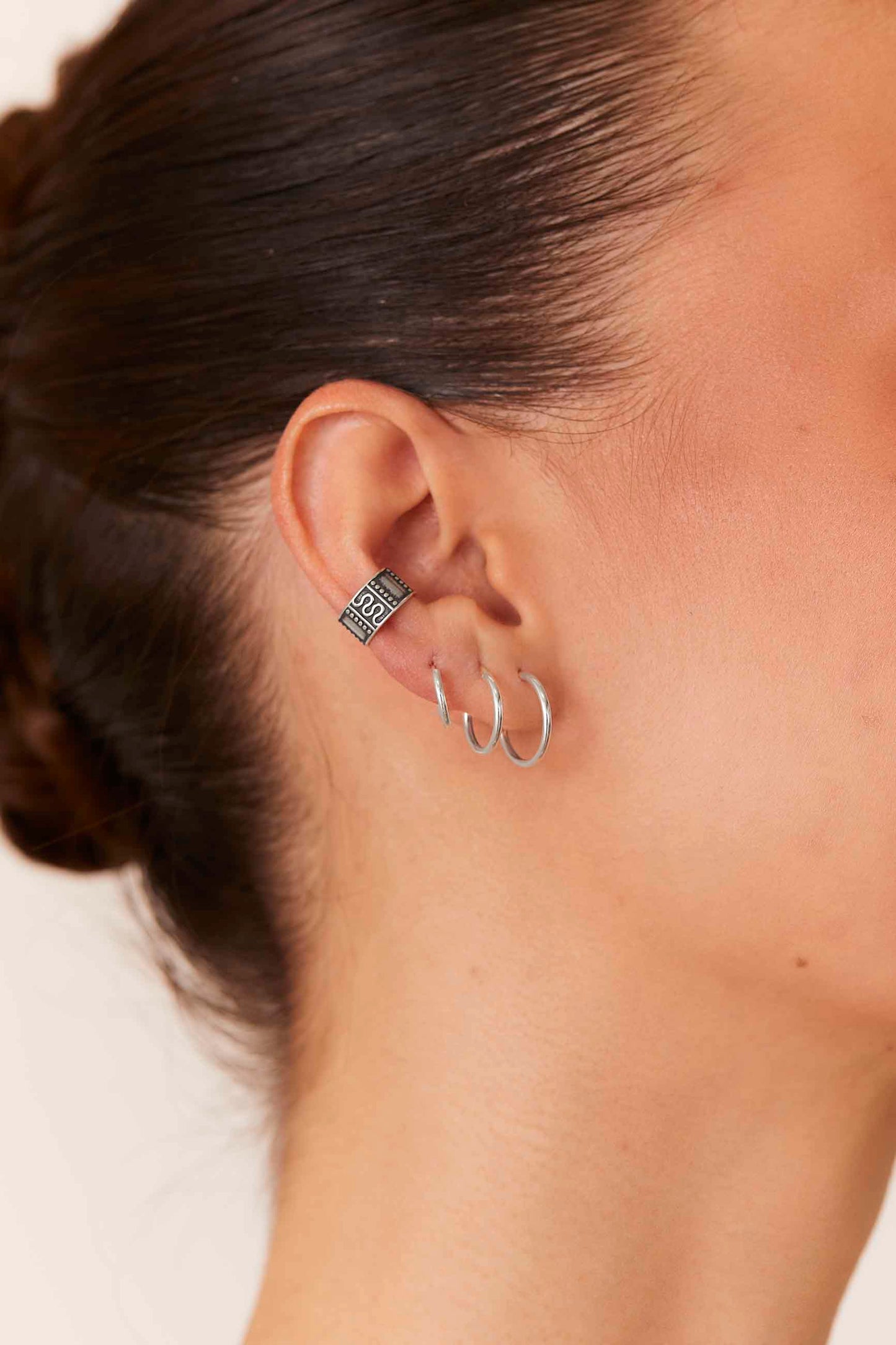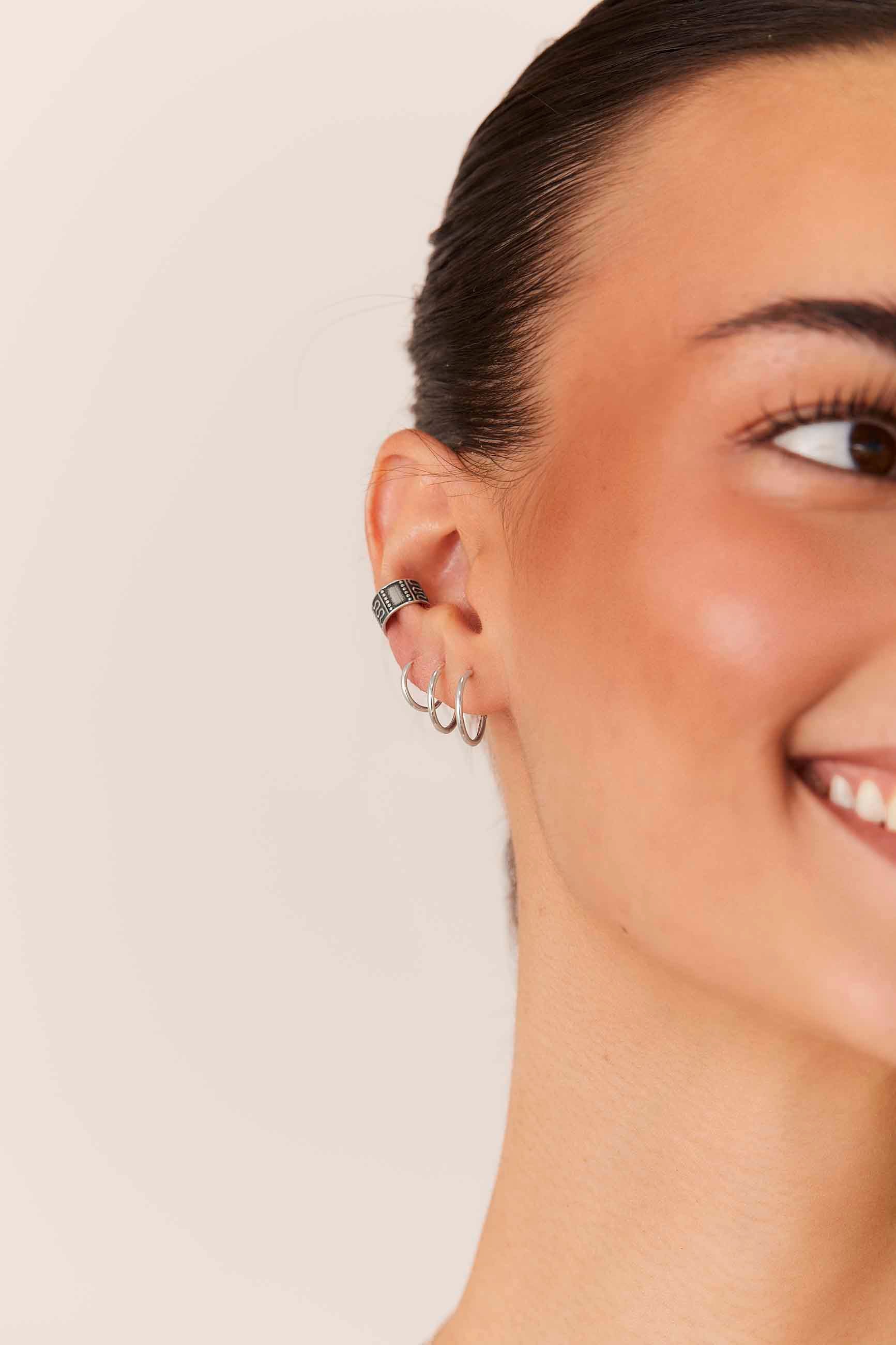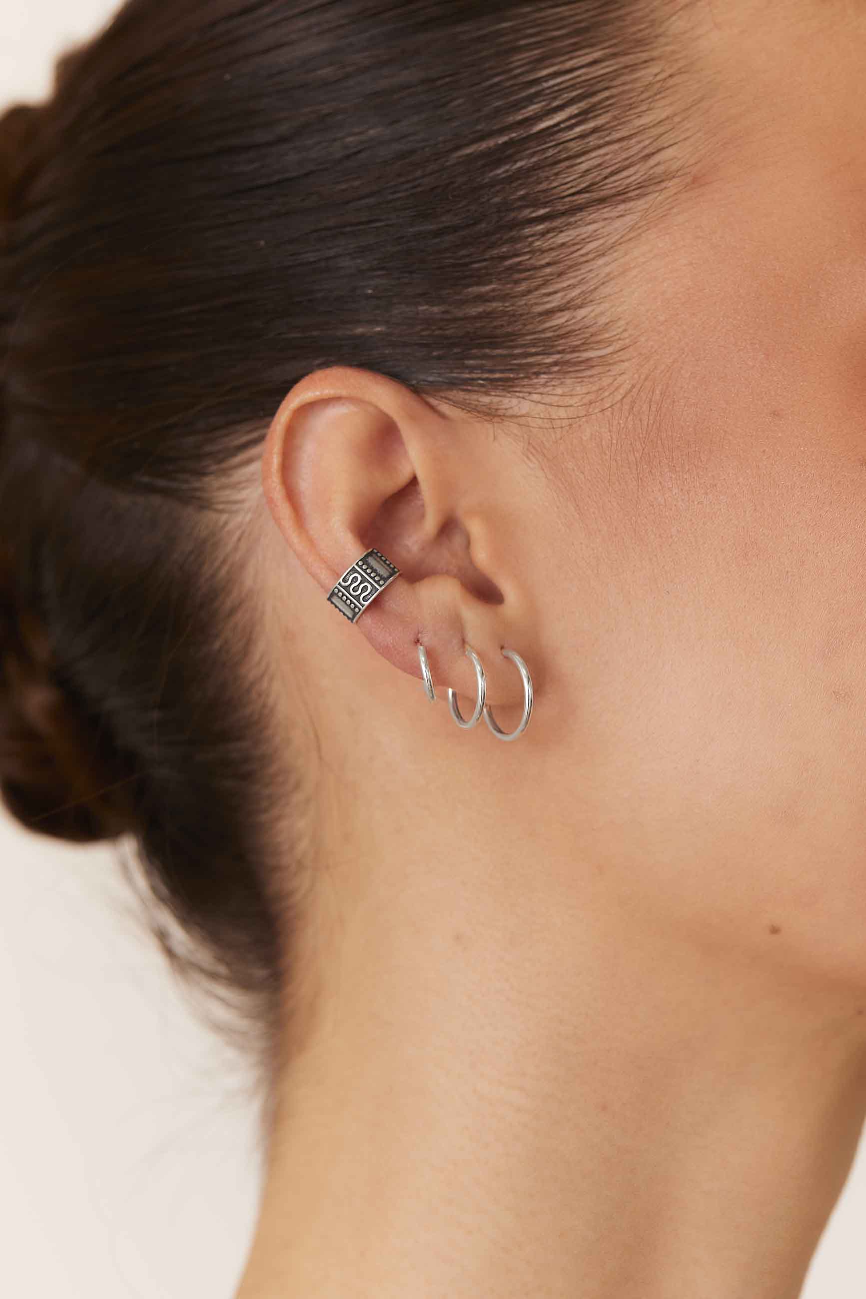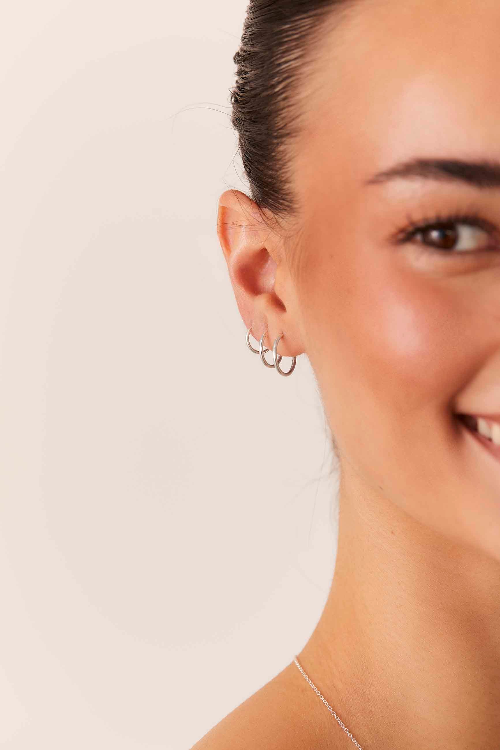 Das CHIKA Set besteht aus drei schlichten Creolen in verschiedenen Größen: eine Einheit JIVIN (14mm), eine Einheit JEEVAN (12mm) und eine Einheit JIVANA (10mm).