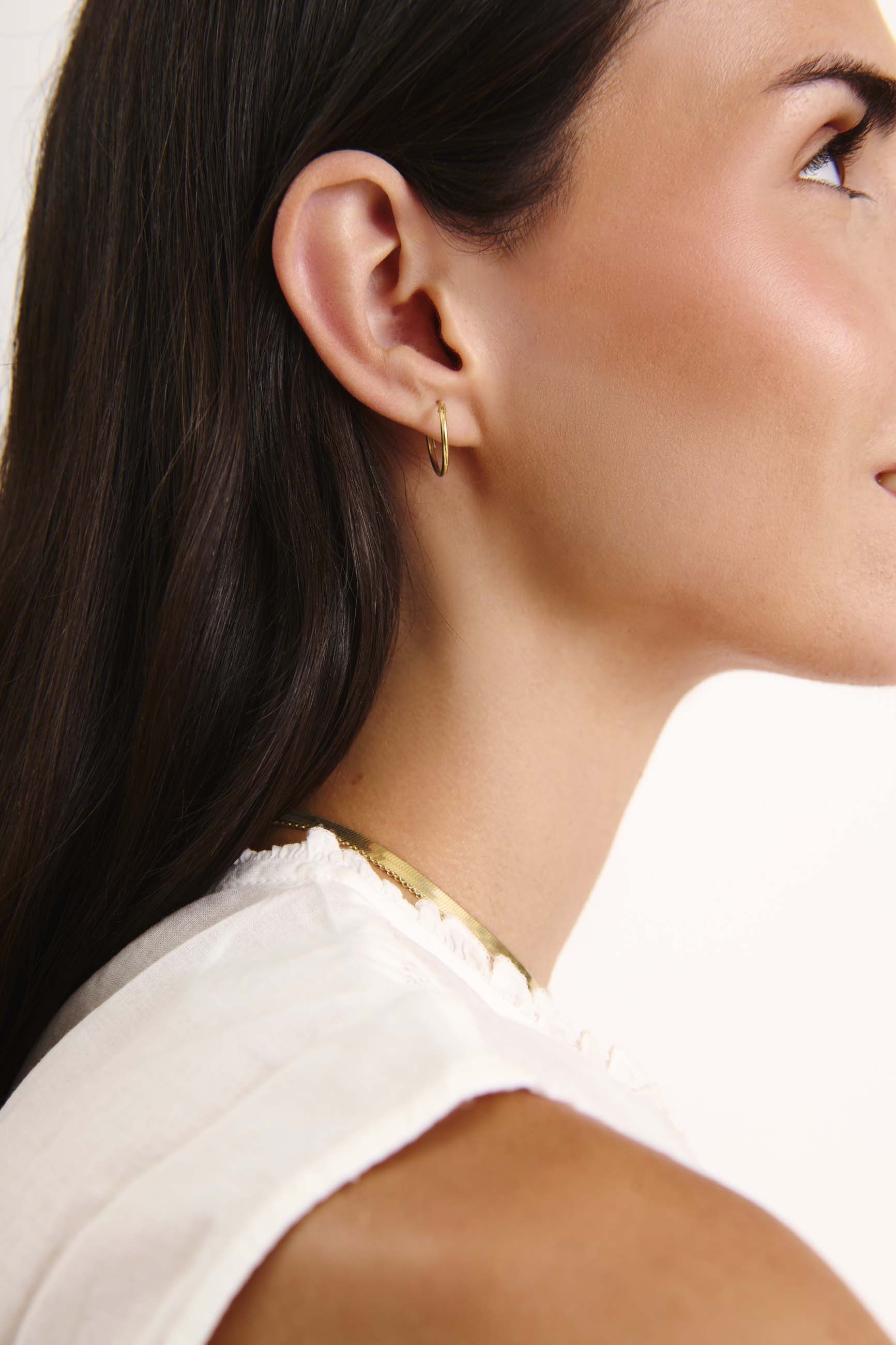 Die JIVIN GOLD (14mm) Ohrringe sind kleine schlichte Ohrringe aus 925er Sterling Silber und mit 22K Gold beschichtet.