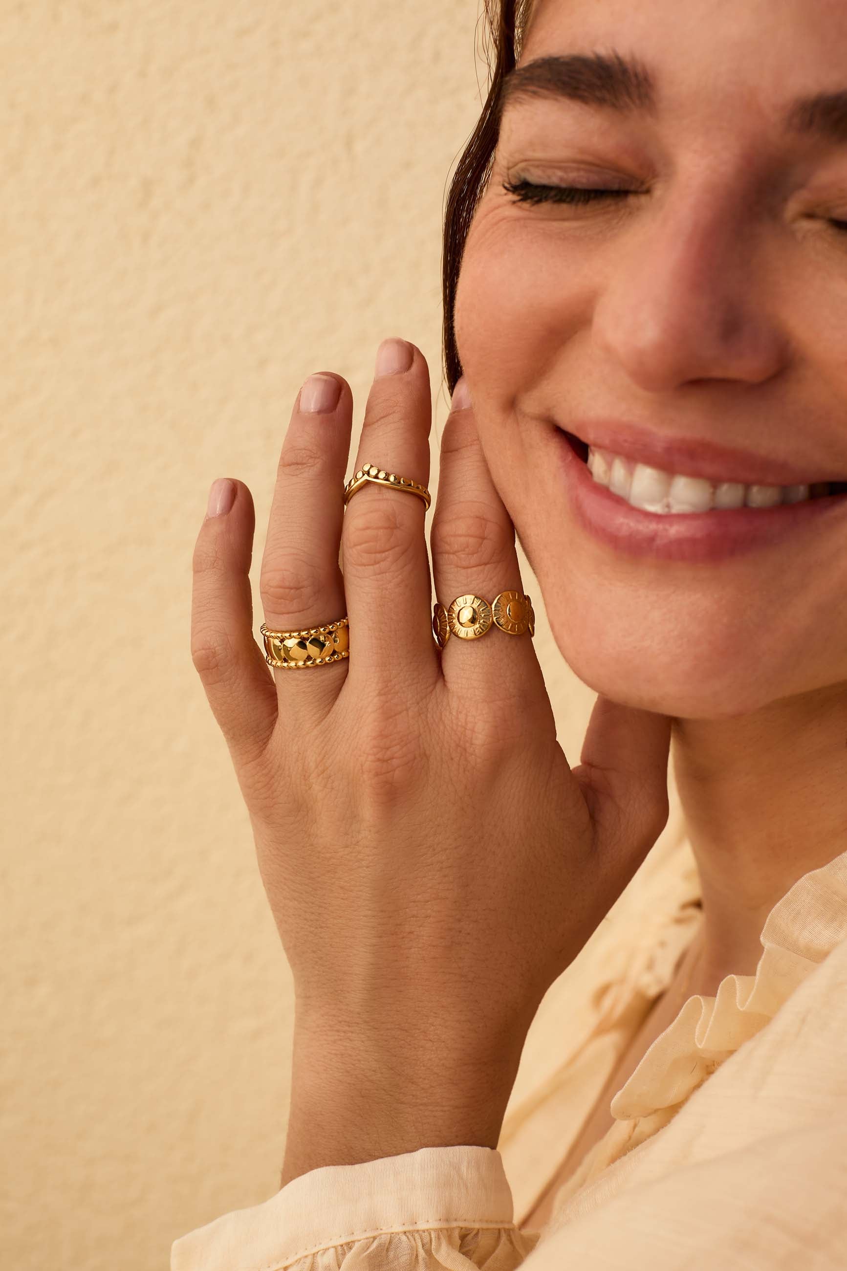 Wenn du denselben Ring an mehreren Fingern tragen möchtest, haben wir auch verstellbaren Ringe. Diese Ringe passen auf verschiedene Fingergrößen, so dass du deine Größe nicht wissen musst! Jeder verstellbare Ring passt auf die eine oder andere Größe, in der Beschreibung jedes Produkts siehst du, welche Größen sie erreichen können.