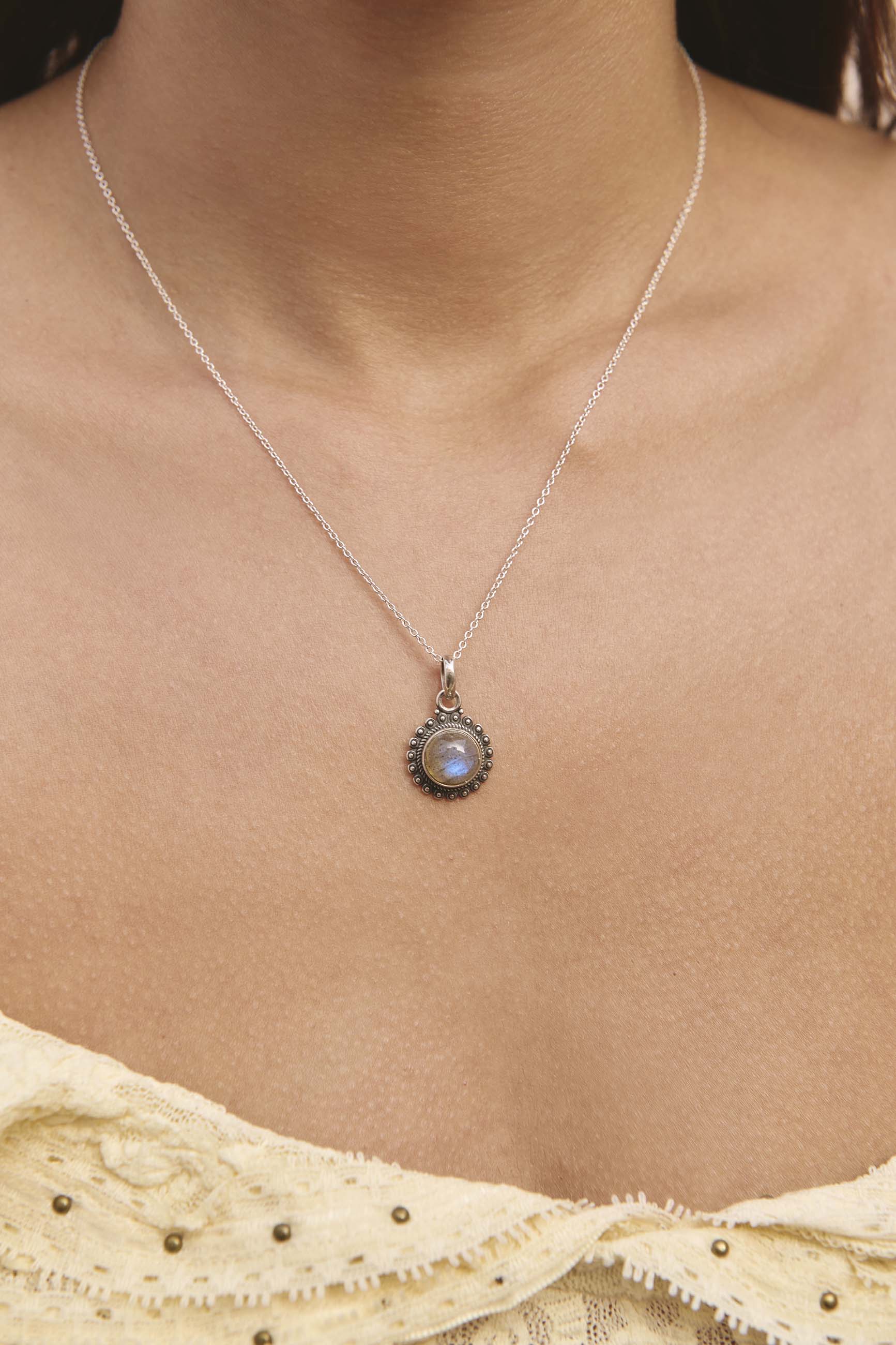 Die Halskette DISHA ist ein handgefertigtes Schmuckstück aus 925er Sterling Silber und Labradorit. Es hat eine unendliche Farbpalette, jeder Farbton ist ungleichmäßig und einzigartig.