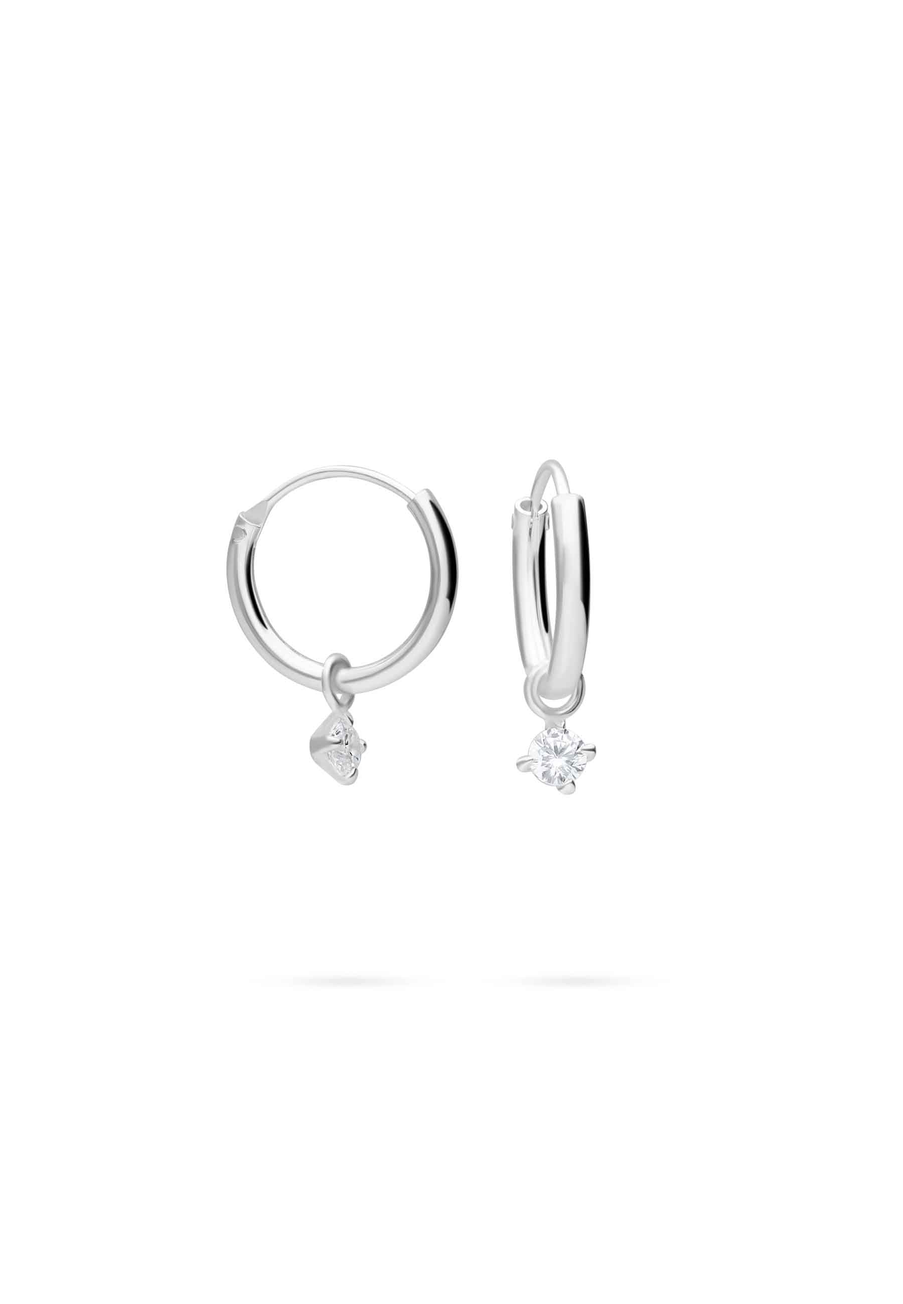Die KASHVI Ohrringe (12mm) sind kleine Creolen mit einem Zirkonien Anhänger.