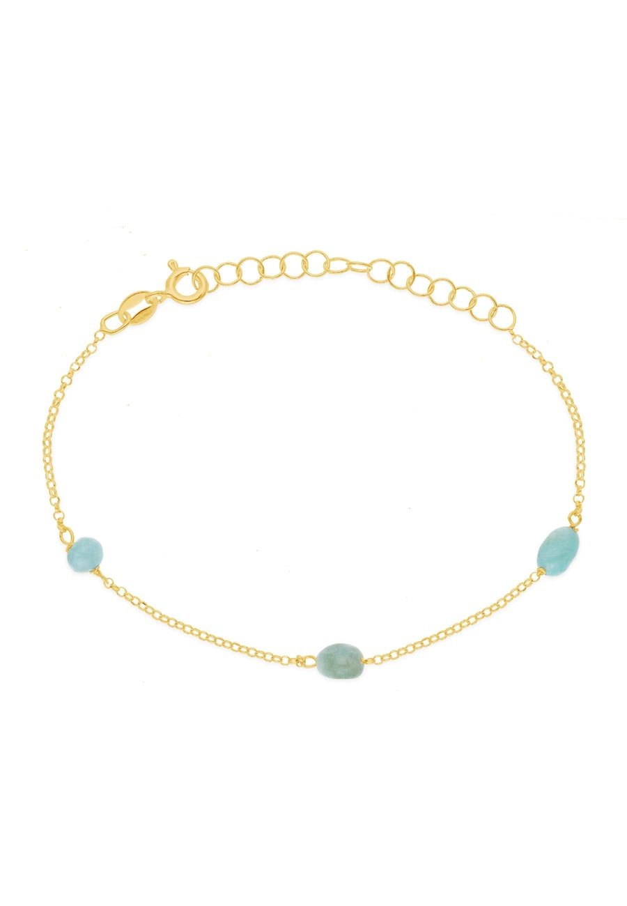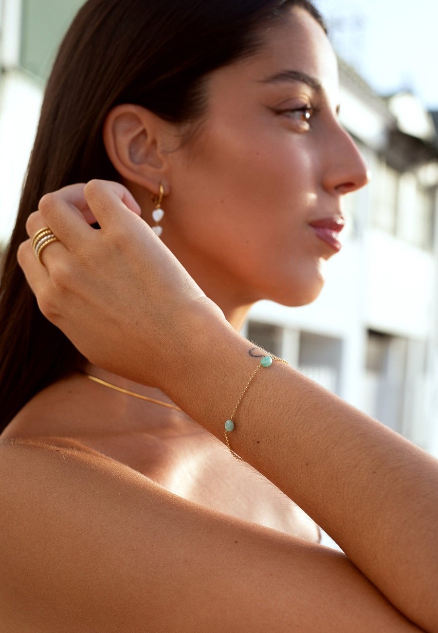 Ergänze deinen Look mit unserem Armband aus 925er Sterling Silber, vergoldet für einen Hauch von extra Glanz! Das Armband verfügt über eine schlanke Kette, die drei glänzende Amazonit-Steine elegant umarmt. Die Kombination aus Silber und dem warmen Schimmer von Gold unterstreicht die natürliche Schönheit der grün gefärbten Steine und verleiht deinem Stil einen subtilen, eleganten Charme.