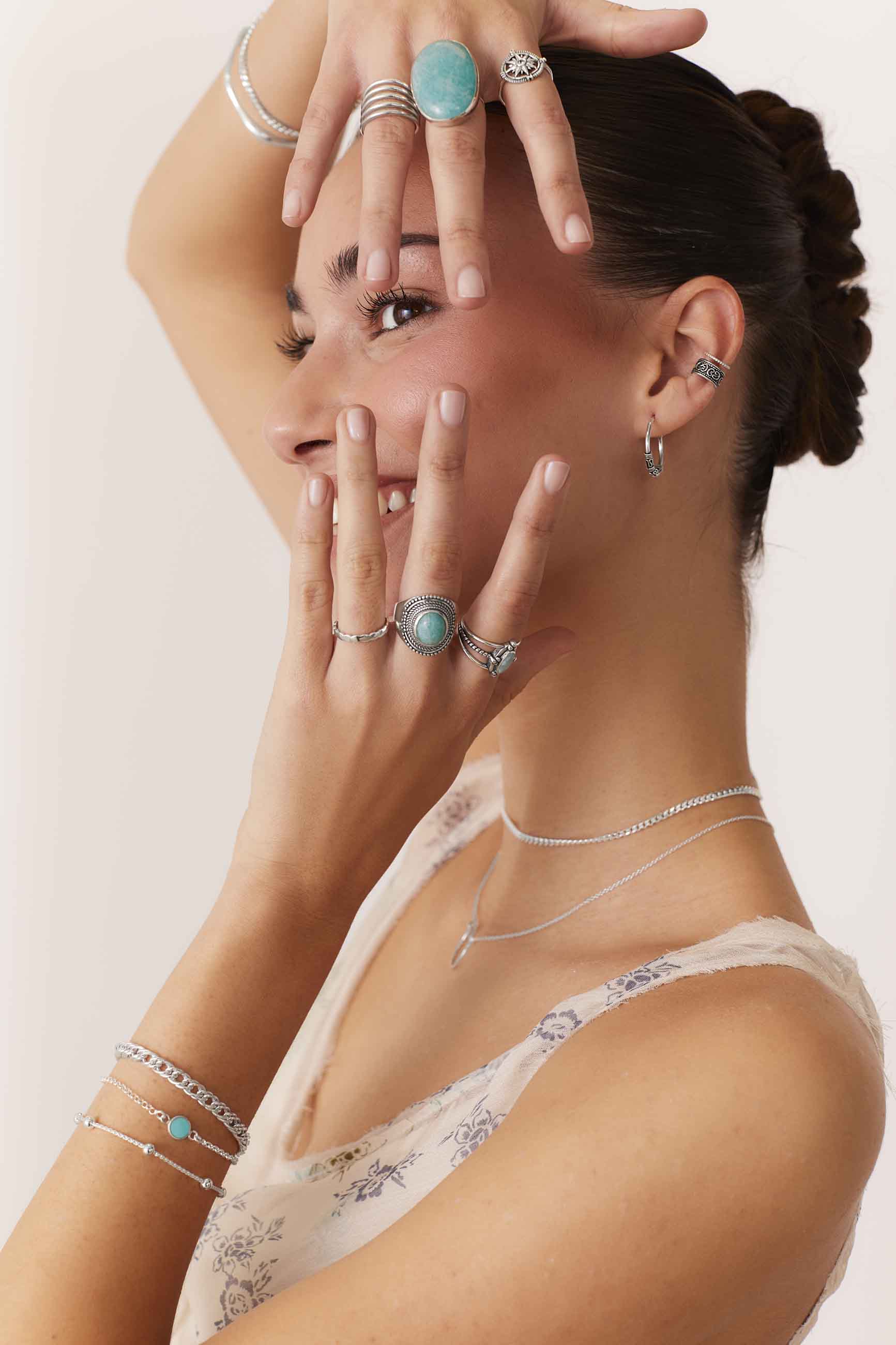 Unsere Schmuckstücke sind aus 925er Sterling Silber gefertigt, einem wertvollen Material, das du im Alltag tragen kannst, ohne es zu beschädigen. Obwohl sie in bestimmten Situationen nachdunkeln können, sind sie leicht zu reinigen und behalten ihre ursprünglichen Eigenschaften.