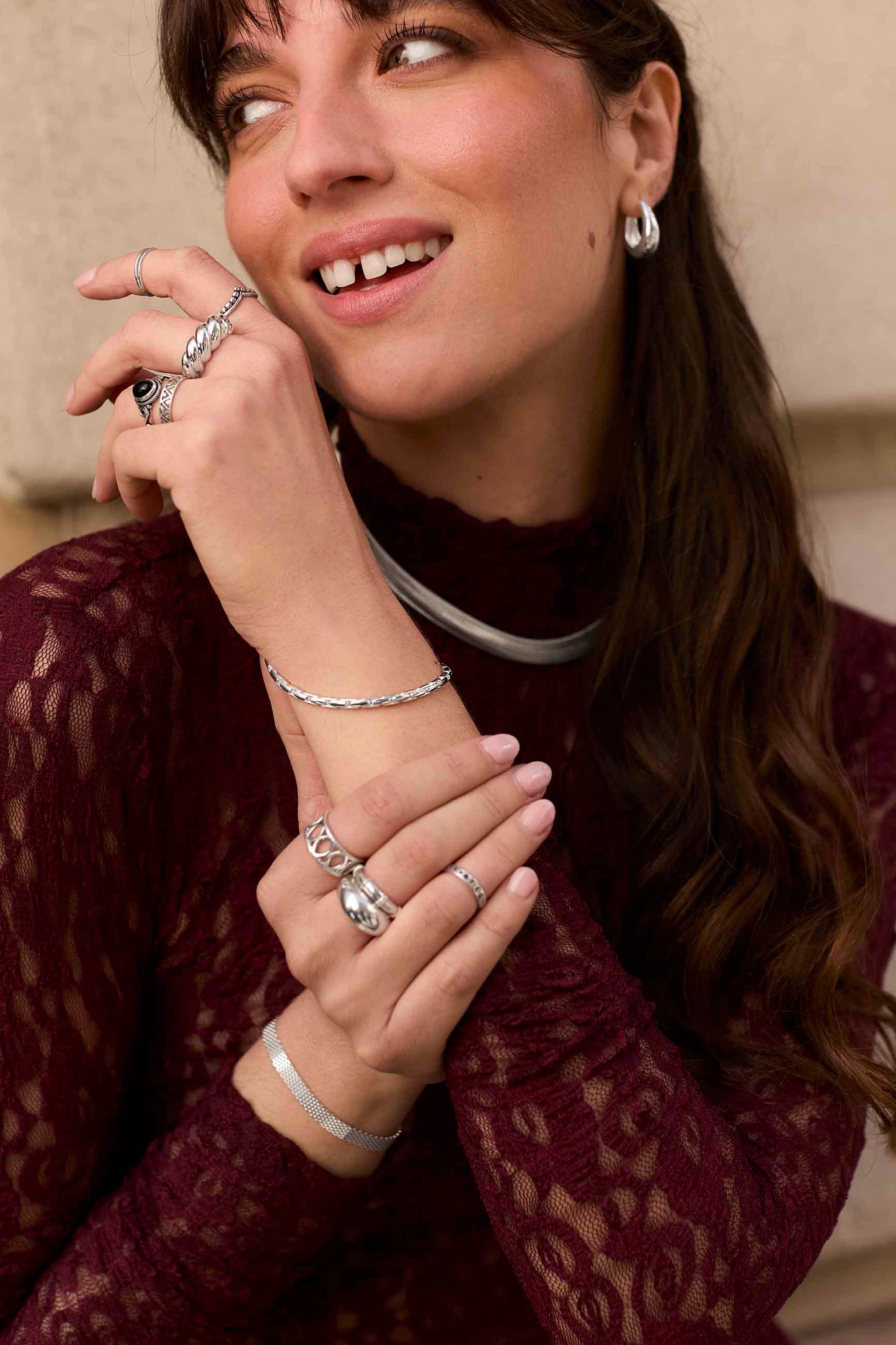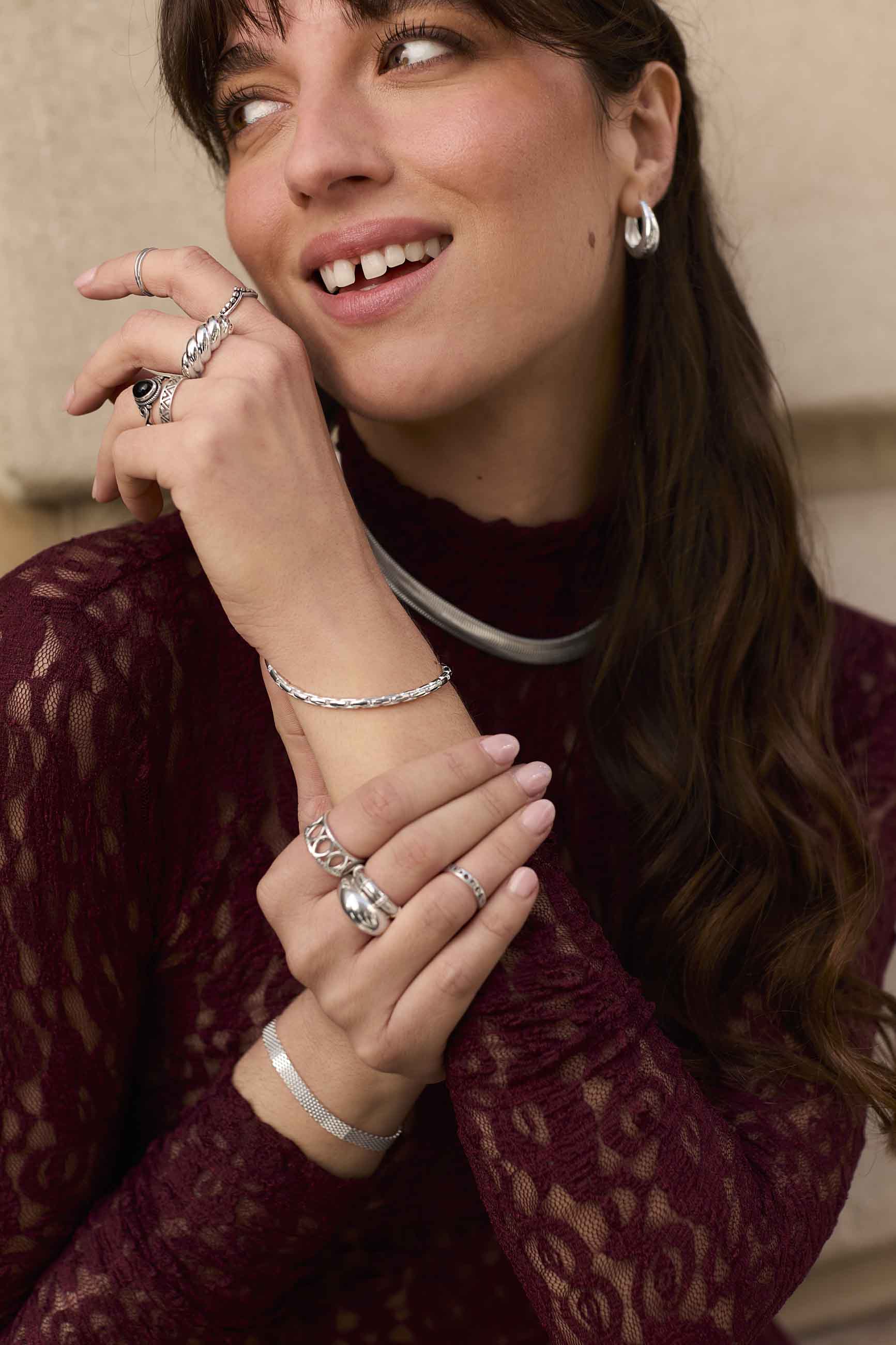 Andererseits haben wir Zehenringe und Midiringe. Sie können auf den Zehen oder auf der Mitte von den Fingern getragen werden. Je nach Größe können sie sogar als normaler Ring verwendet werden! Diese Ringe haben die Größe S, was einer 4 entspricht, und M, was einer 6 entspricht.