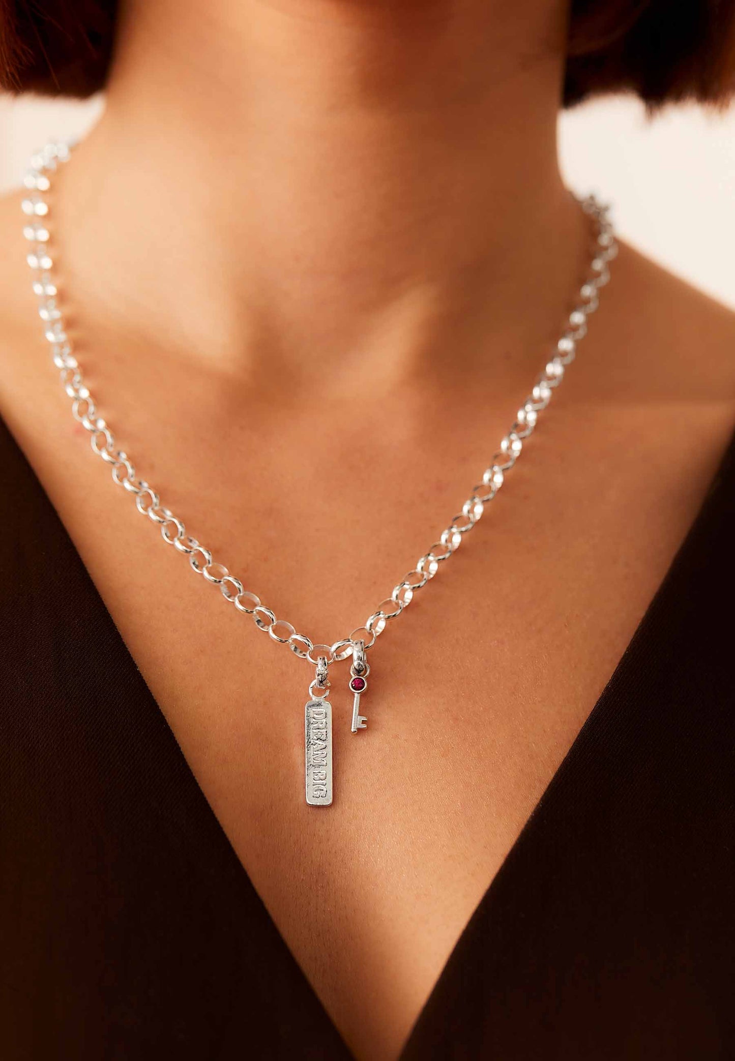 Öffne die Türen zu neuen Erfahrungen mit diesem Schlüssel-Charm und lasse dich von seinem Rubin-Zirkonia auf deinem Weg inspirieren.