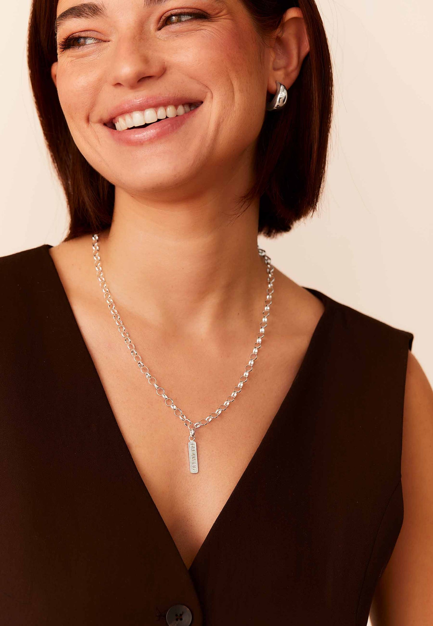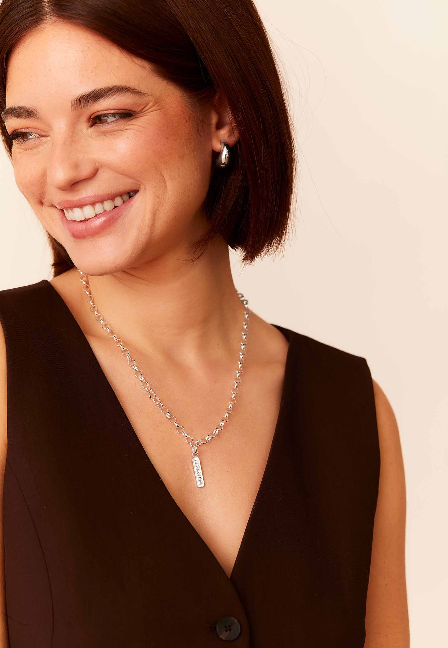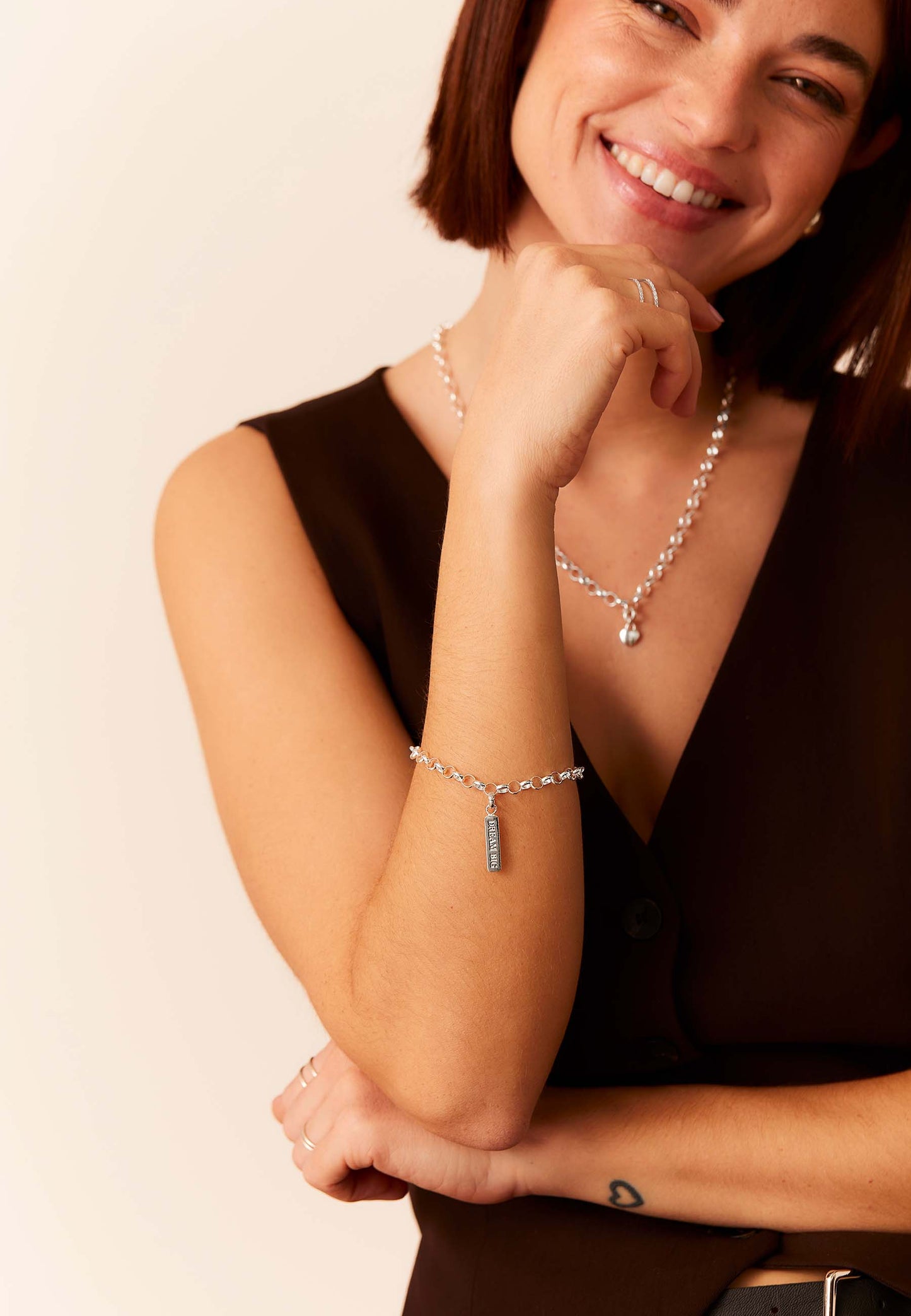 Trage deinen Schmuck häufig und mach dir keine Sorgen bei alltäglichen Aktivitäten wie Duschen, Baden im Meer, Parfümieren oder Sport. Wenn das Silber anläuft, kann es gereinigt werden!