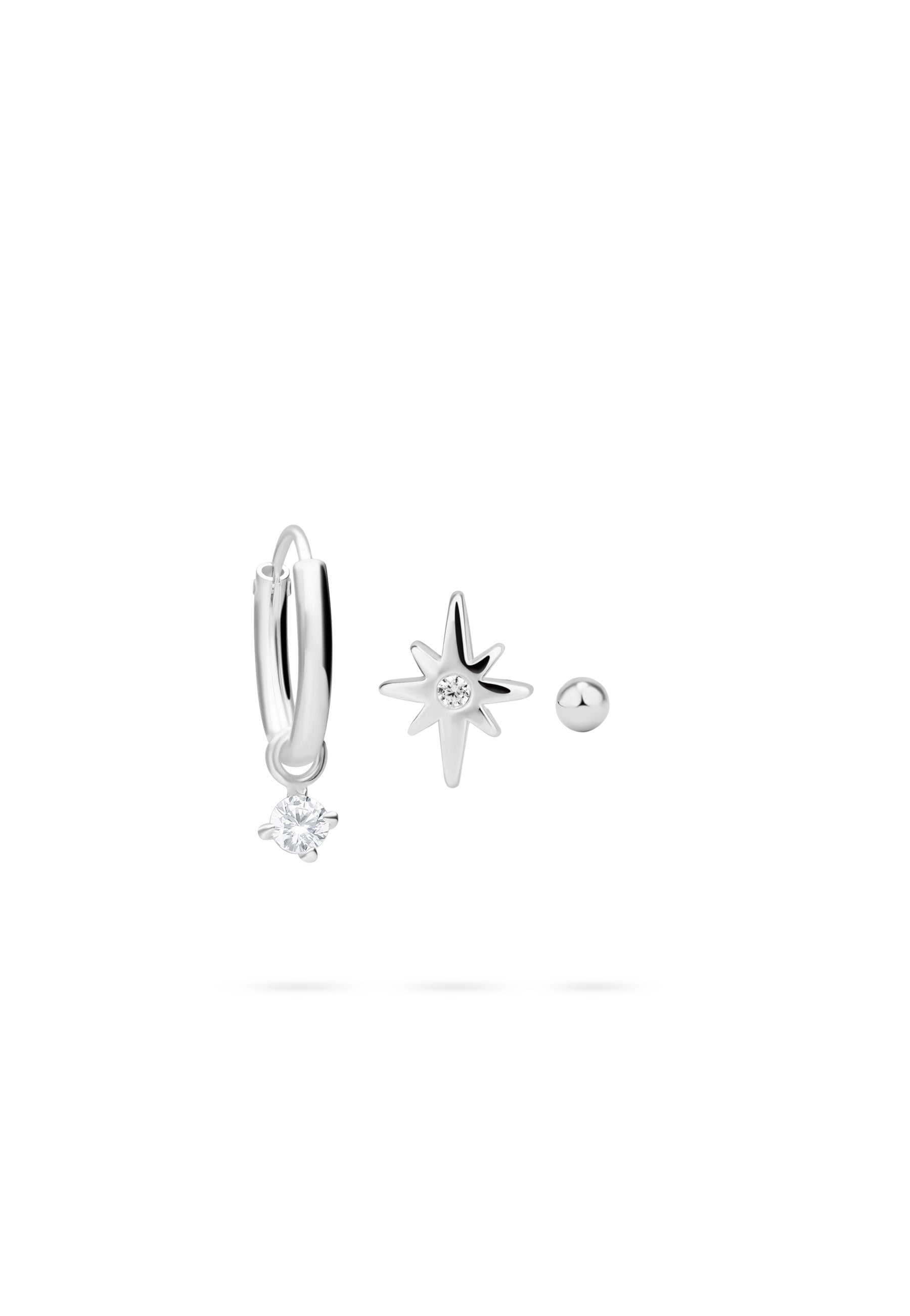 Dieses Set ist ein ideales Kombipaket für alle, die kleine, elegante und bezaubernde Ohrringe lieben. Es enthält drei unserer Lieblingsdesigns: den 12 mm Ring mit Zirkonia KASHVI, das 3 mm Mini-Kügelchen EKAJATI und den kleinen Stern ebenfalls mit Zirkonia SANSA.