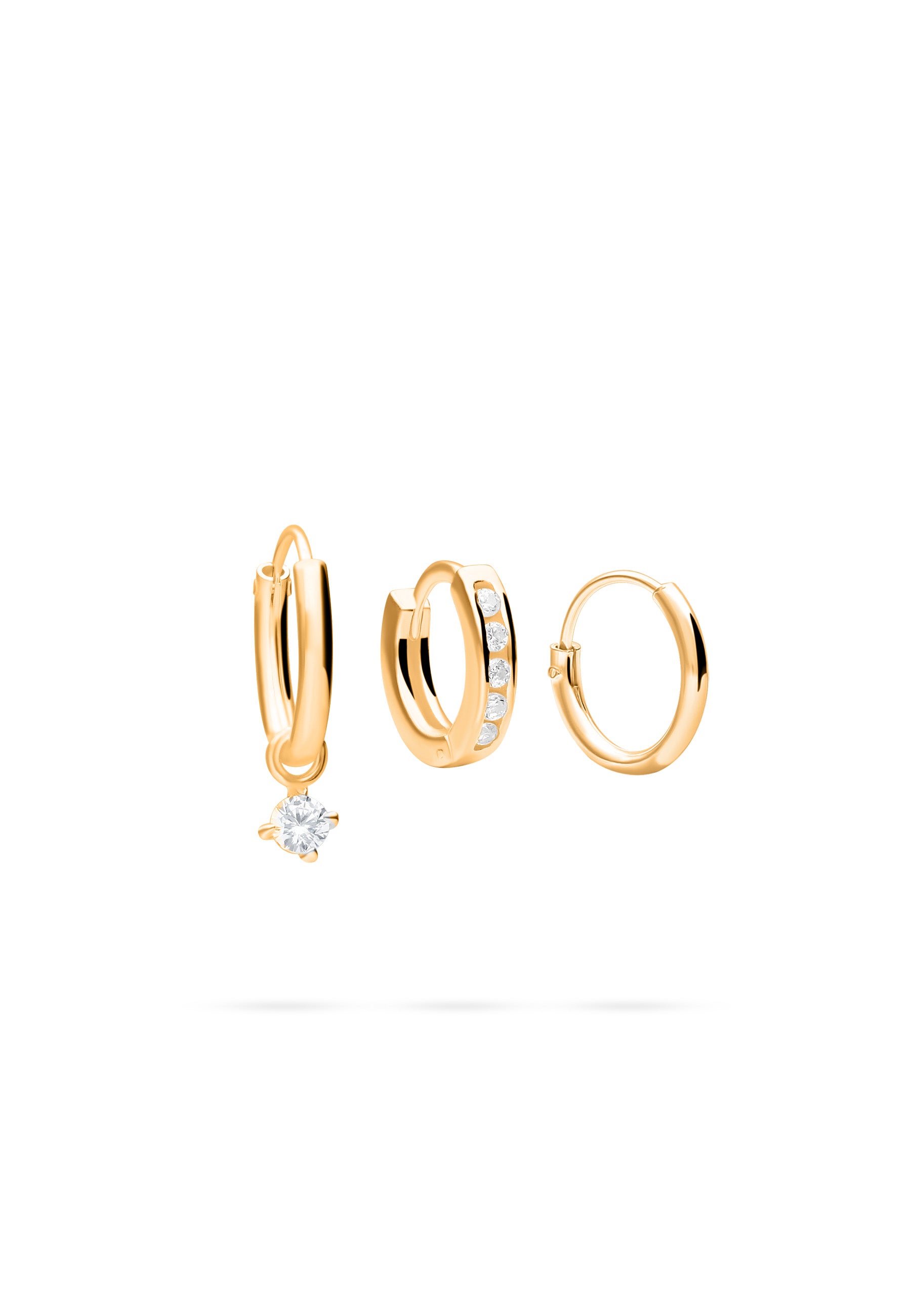 Ohrring-Set mit Creolen und Zirkonias in RAUSHNI Gold