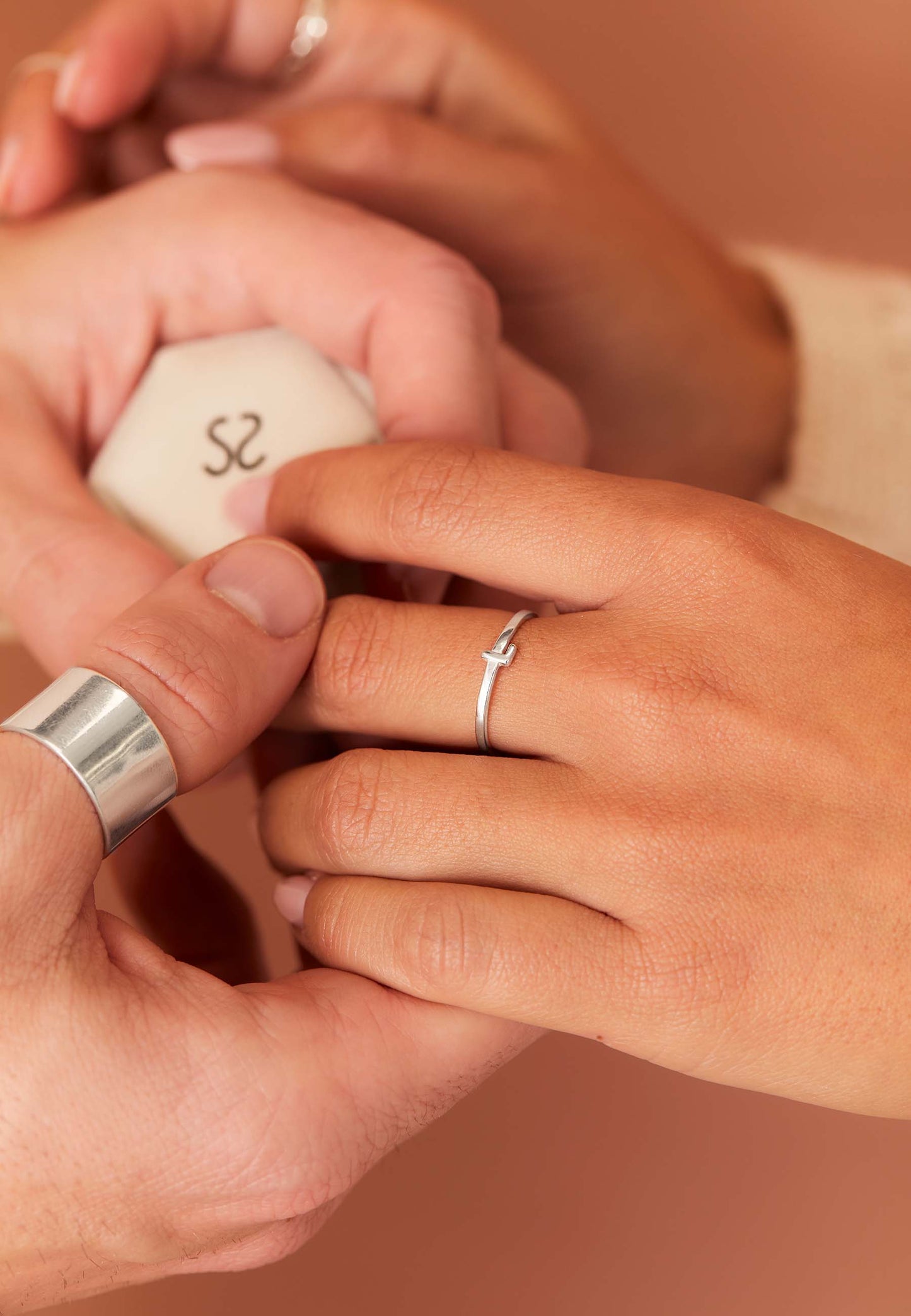 Das Pack Ulasa enthält den Ring Naam aus 925er Sterling Silber, der mit den Initialen deiner Wahl personalisiert ist, sowie ein sechseckiges Samtetui, das ideal zum Schutz und zur Präsentation dieses besonderen Schmuckstücks ist. Durch sein minimalistisches und verstellbares Design wird der Ring zu einem einzigartigen und bedeutungsvollen Schmuckstück, das man immer tragen kann.