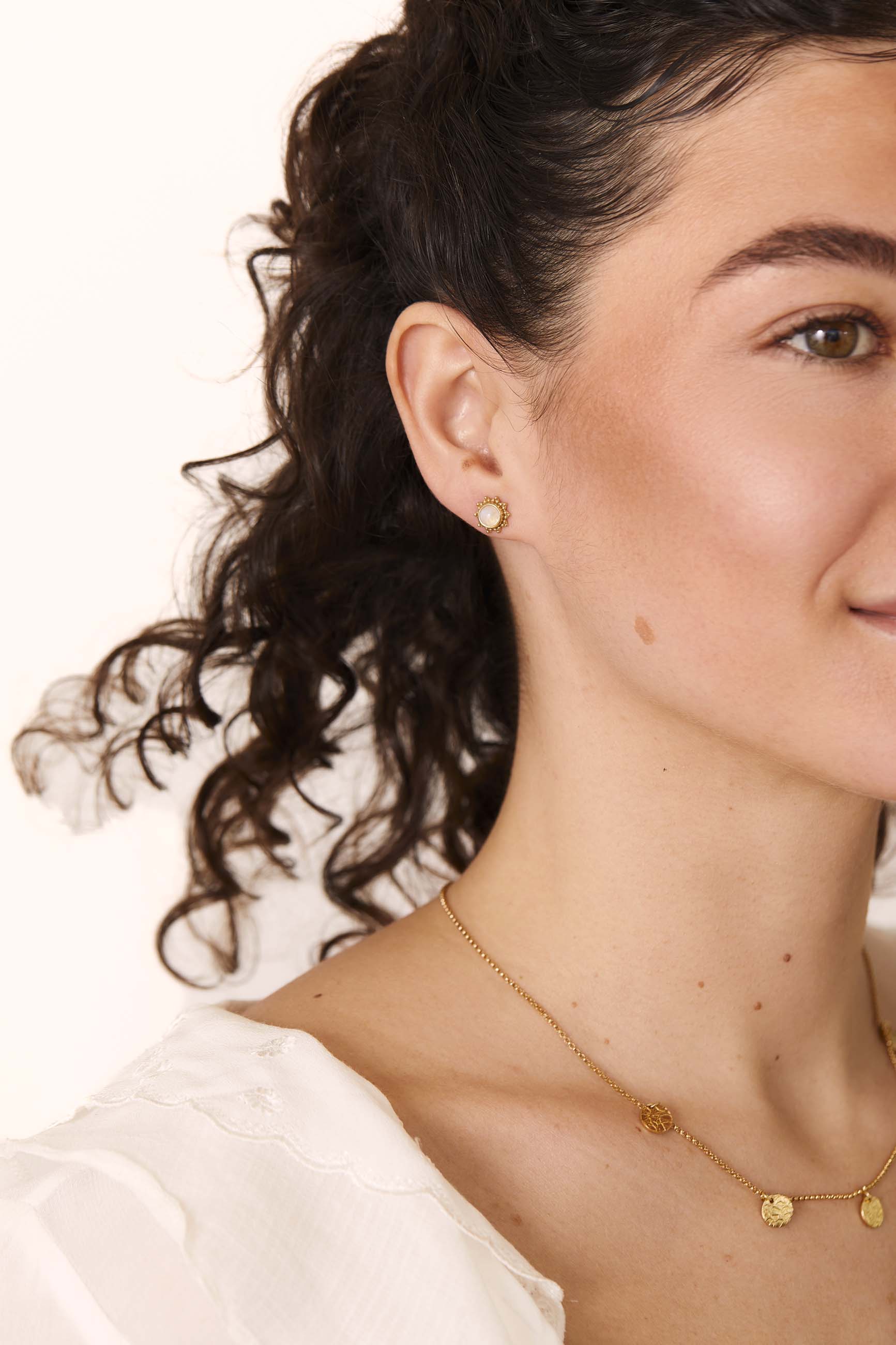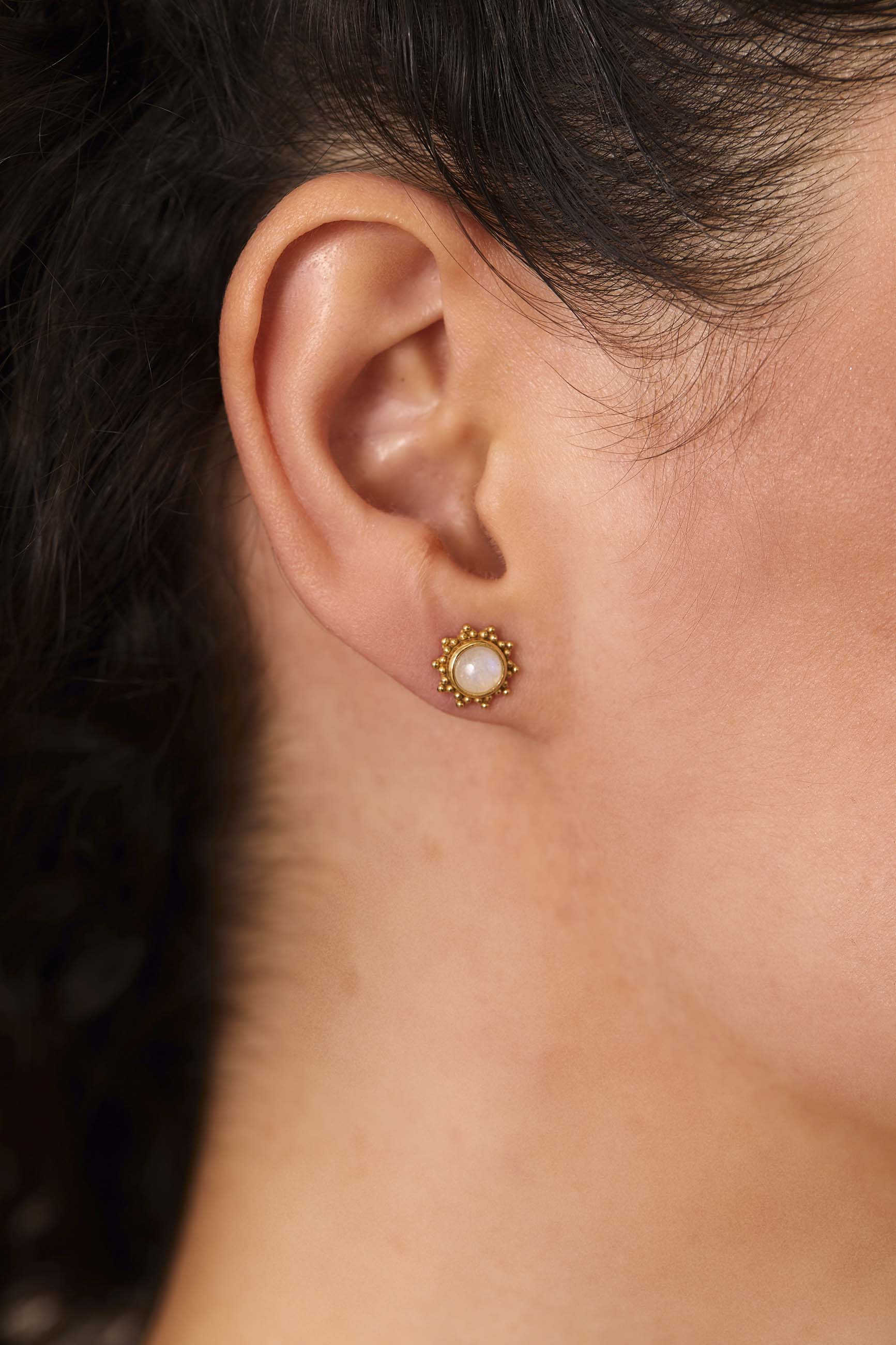.Die ISHAAN GOLD Ohrringe sind etwas ganz Besonderes, ihr Design ist von der Form der Sonne inspiriert. Der Mondstein verleiht diesem schönen Stück Glanz und Farbe