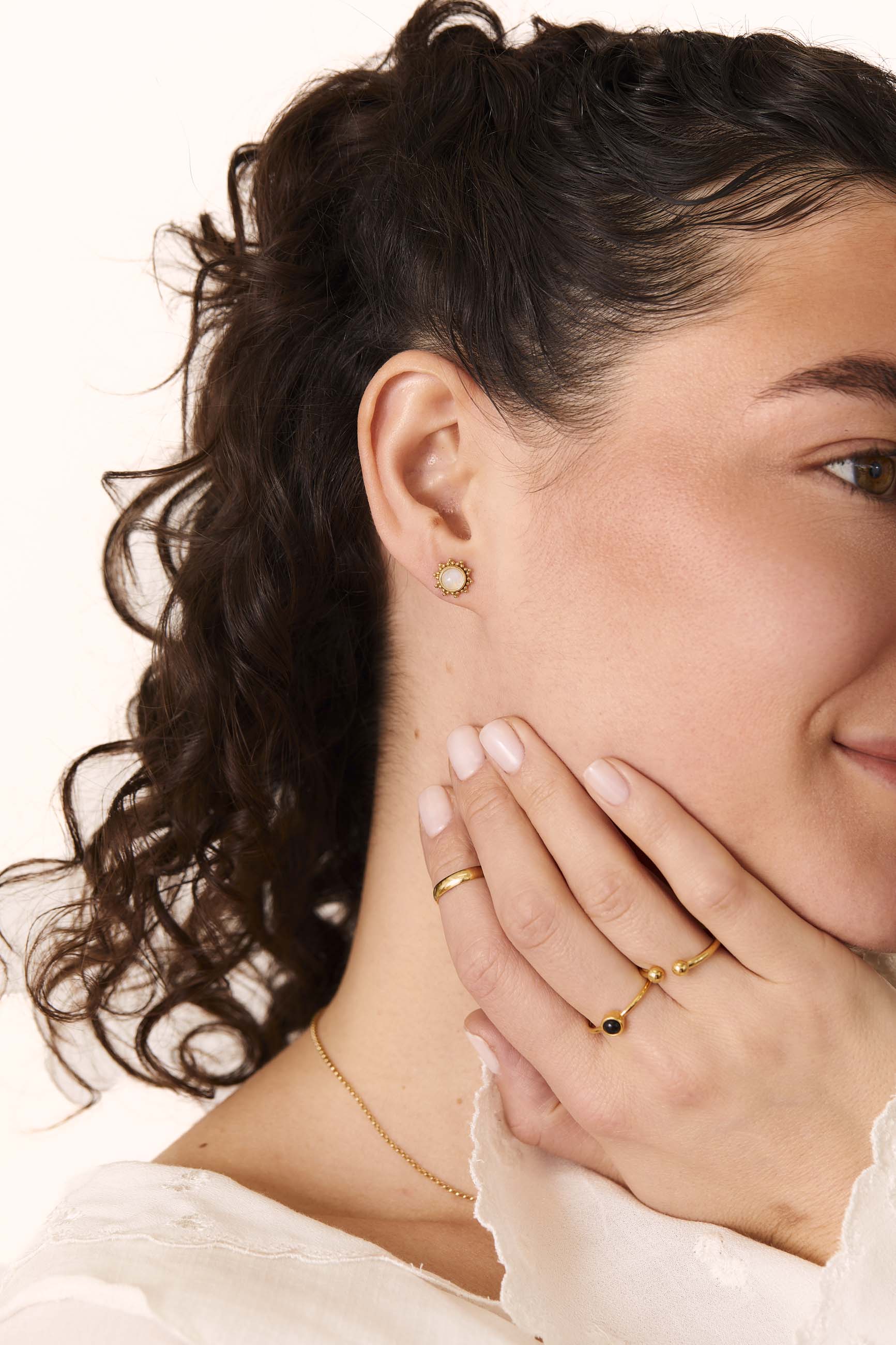 Die ISHAAN GOLD Ohrringe werden zu deinem Lieblingsschmuckstück. Da sie aus einem Naturstein bestehen, ist jeder Ohrring ein Unikat. Seine Größe und Farbe machen ihn zum perfekten Hauptohrring.