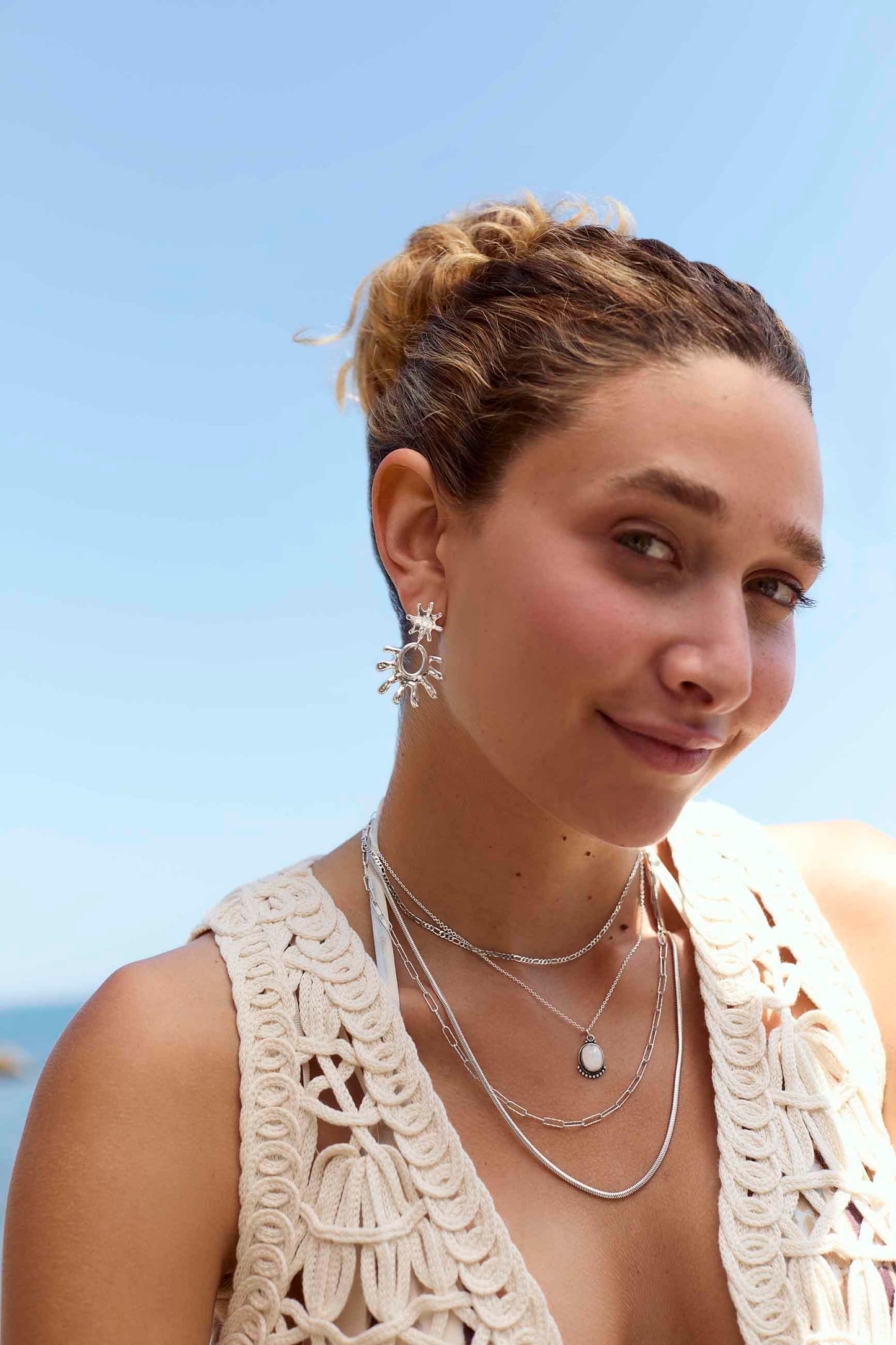 Die PIGALANA Ohrringe sind pures Sommerfeeling. Gefertigt aus plattiertem Messing und hergestellt in Spanien, überzeugen sie mit einem großen, sonnenförmigen Design, das jedem Look Stärke, Licht und Persönlichkeit verleiht.