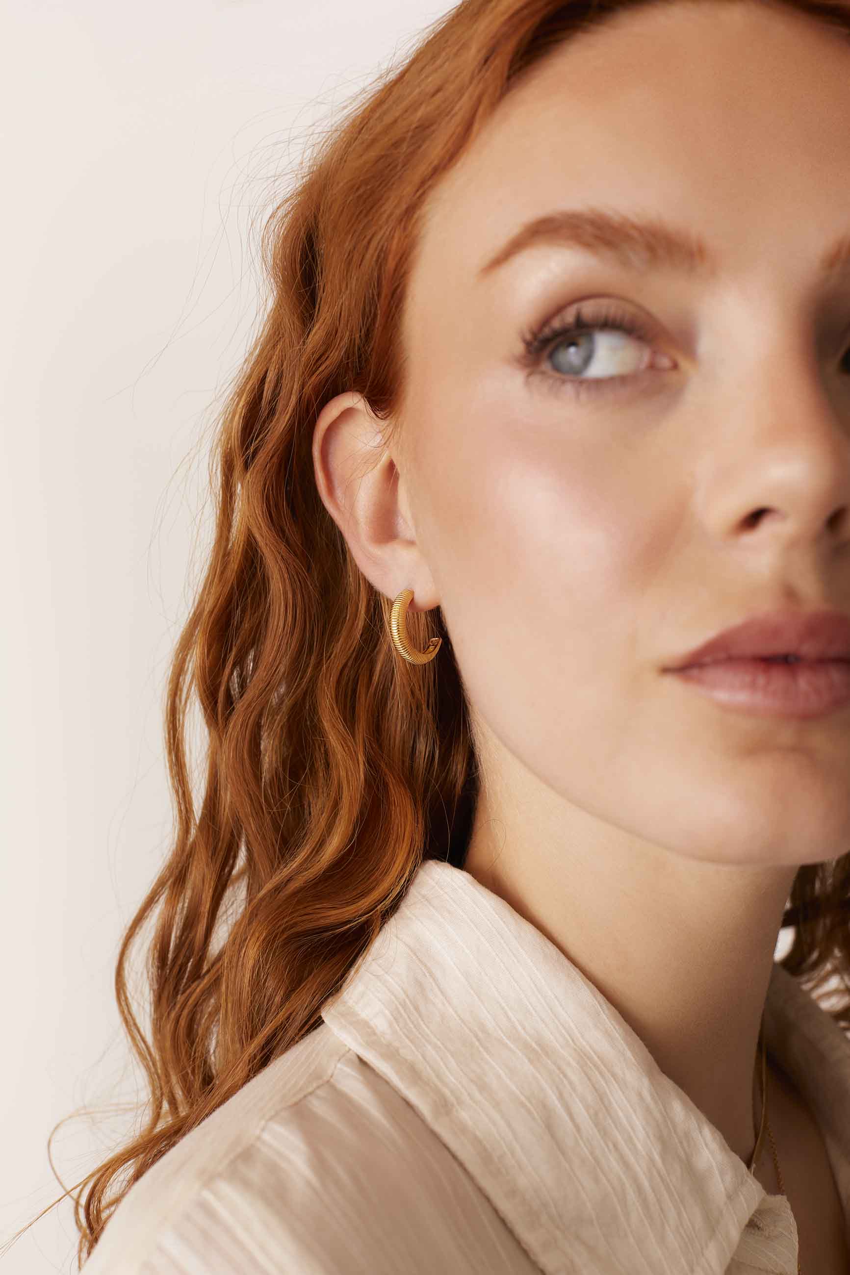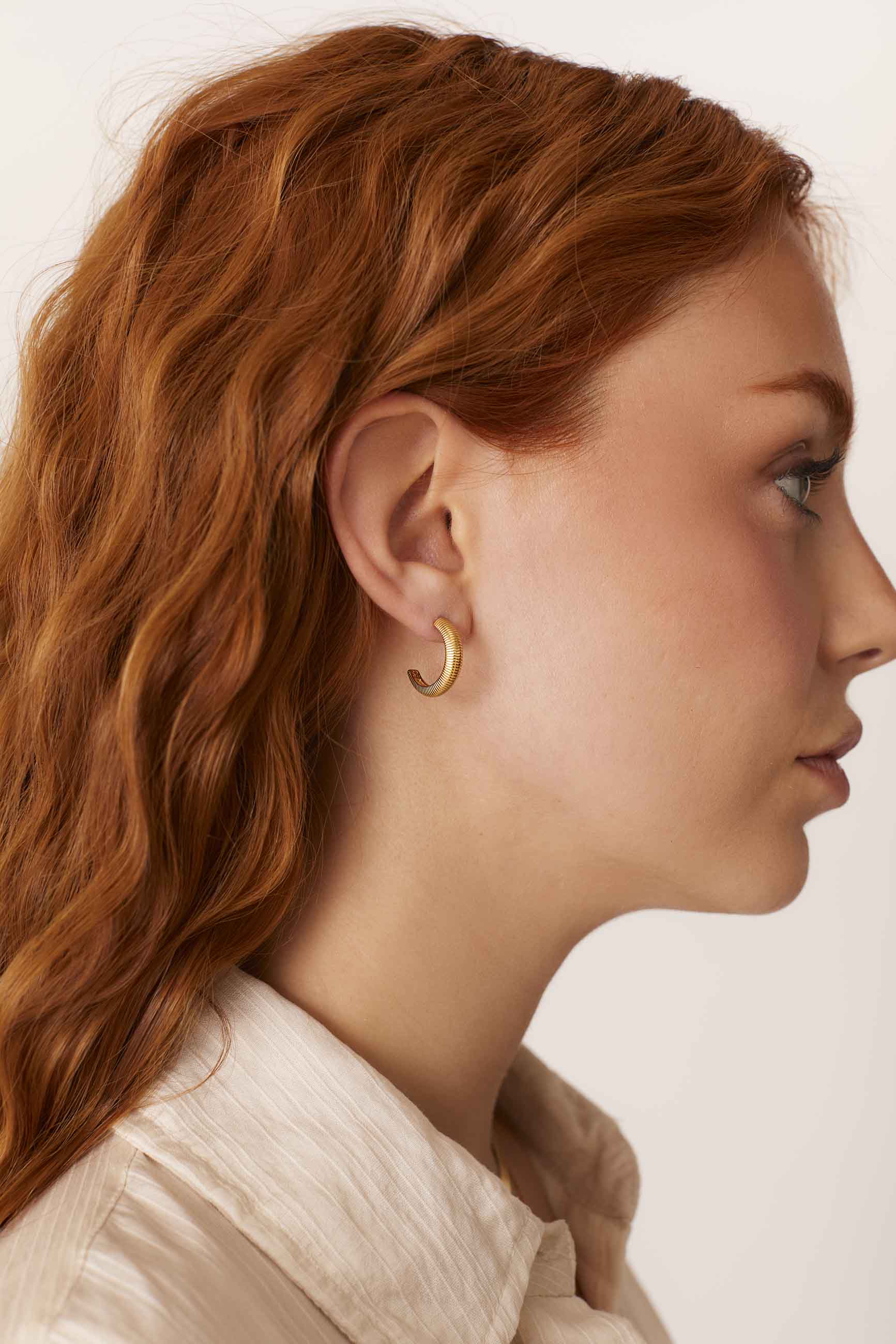 Außerdem haben sie kleine Linien, die den Ohrring durchqueren und ihm einen einzigartigen und raffinierten Touch verleihen. Mit diesen Ohrringen siehst du nicht nur elegant aus, sondern strahlst auch mit einem goldenen Glanz, der dich natürlich glänzen lässt.