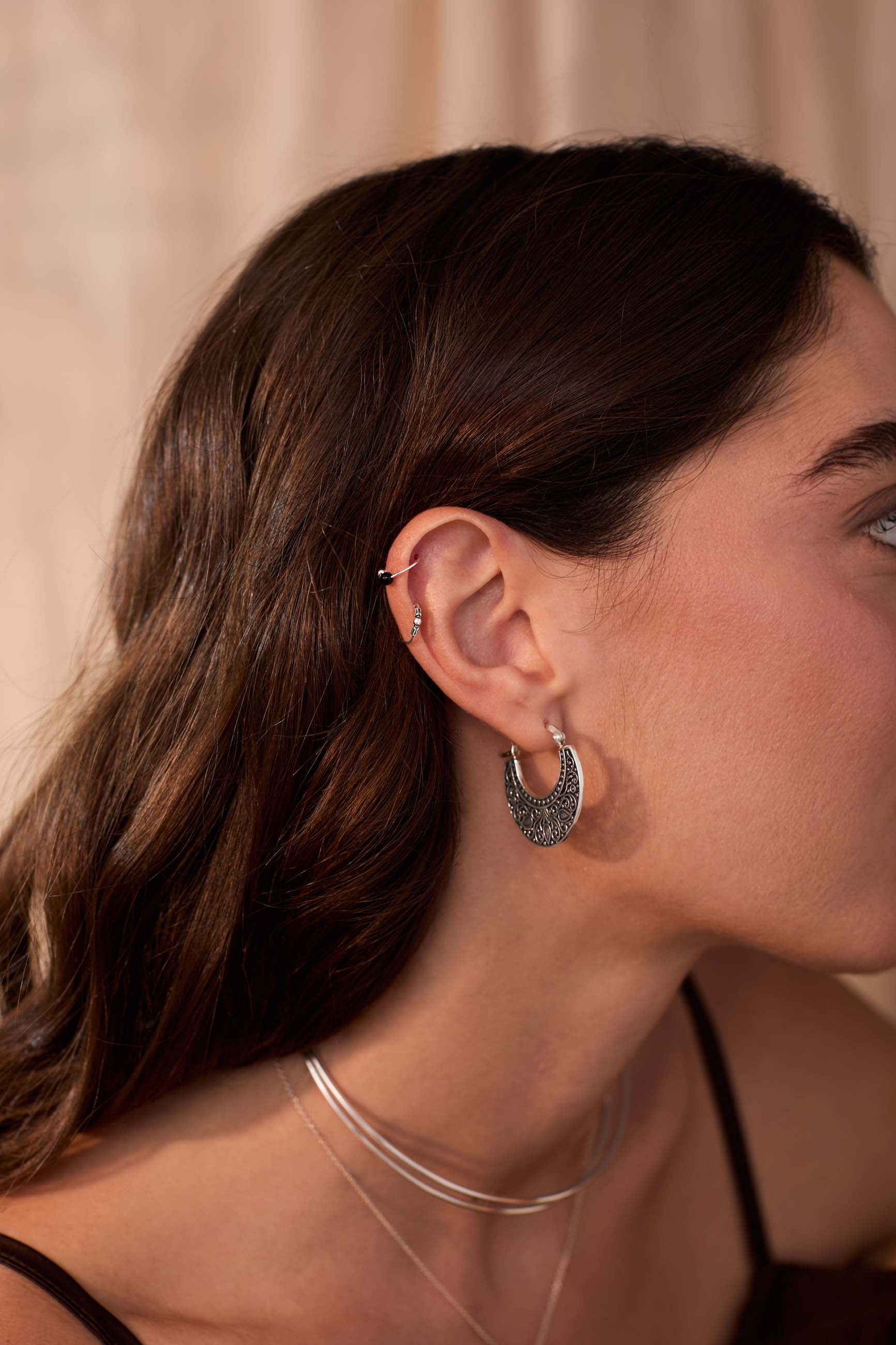 The DHARMA piercings are small and light Bali piercings. The DHARMA hoop can be easily adapted to your ear, you just have to treat it with care and love.