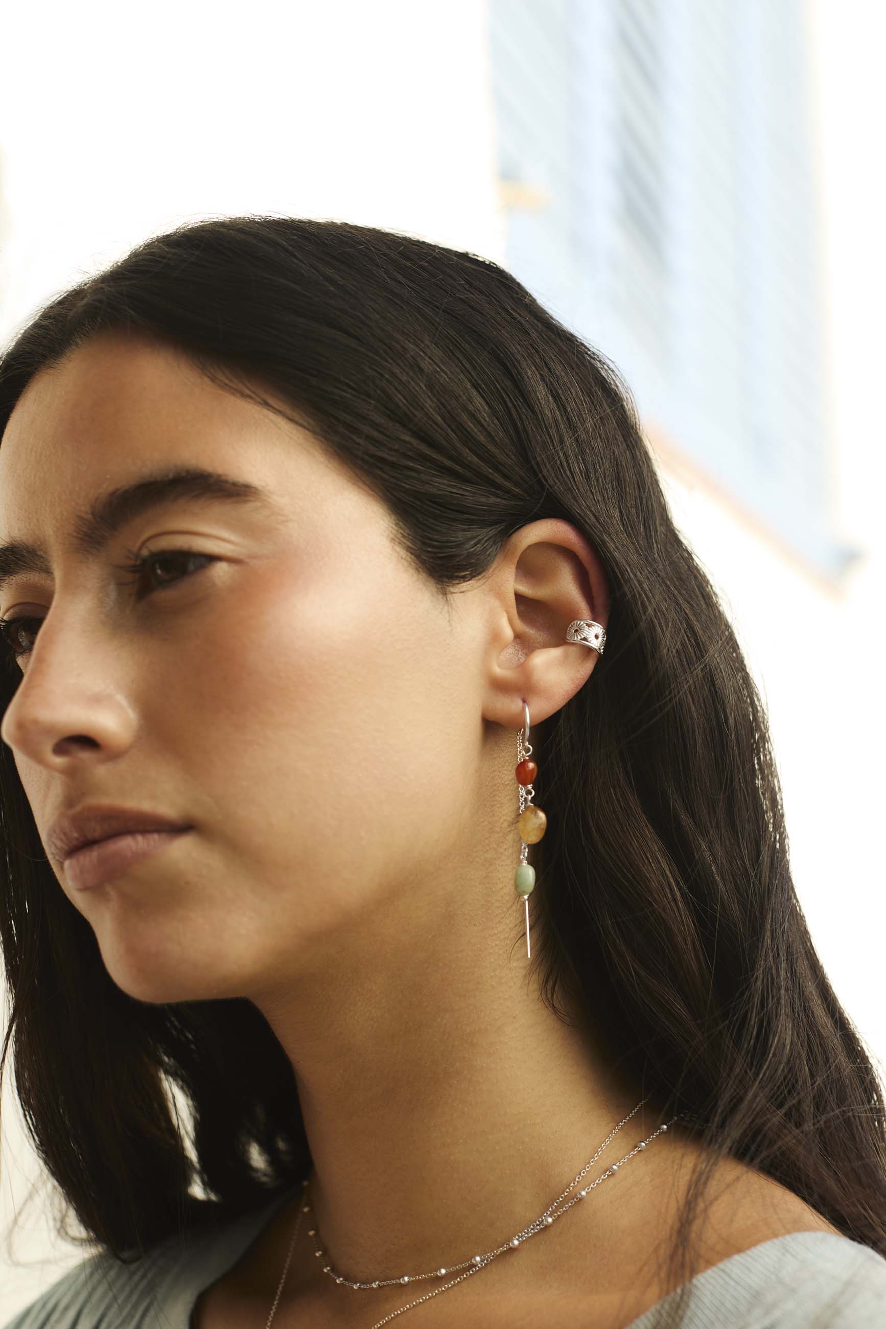 The 925 sterling silver Dipti earrings are versatile and adapt to any occasion. They are ideal for special events, where their modern design and gemstones will draw attention and enhance your beauty: amazonite, citrine and carnelian.
