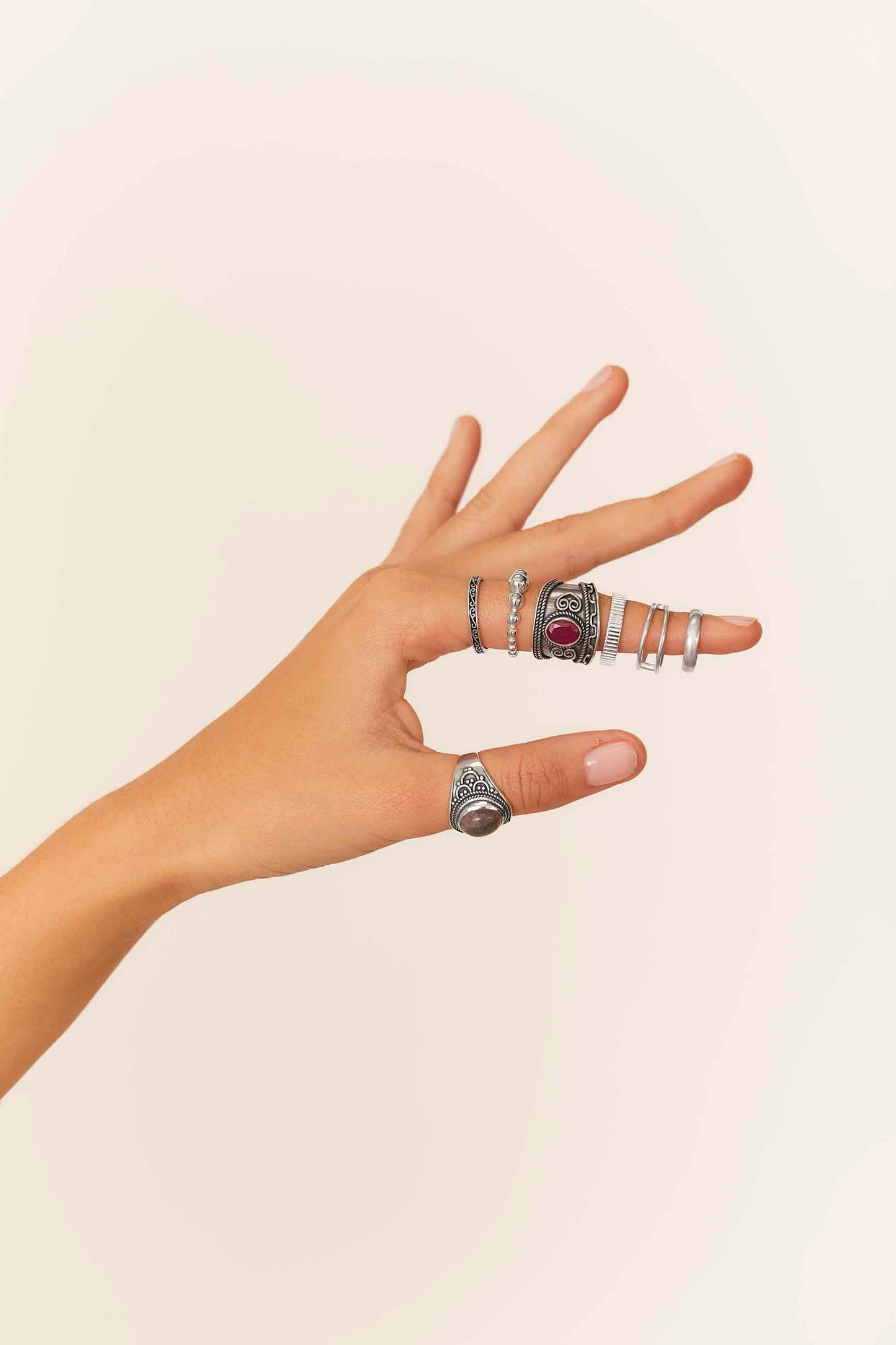 In case you want to use the same ring in several fingers, we also have adjustable rings. These rings fit different finger sizes, so you don't need to know your size! Each adjustable ring covers one size or another, in the description of each product you will see which sizes can reach each one.