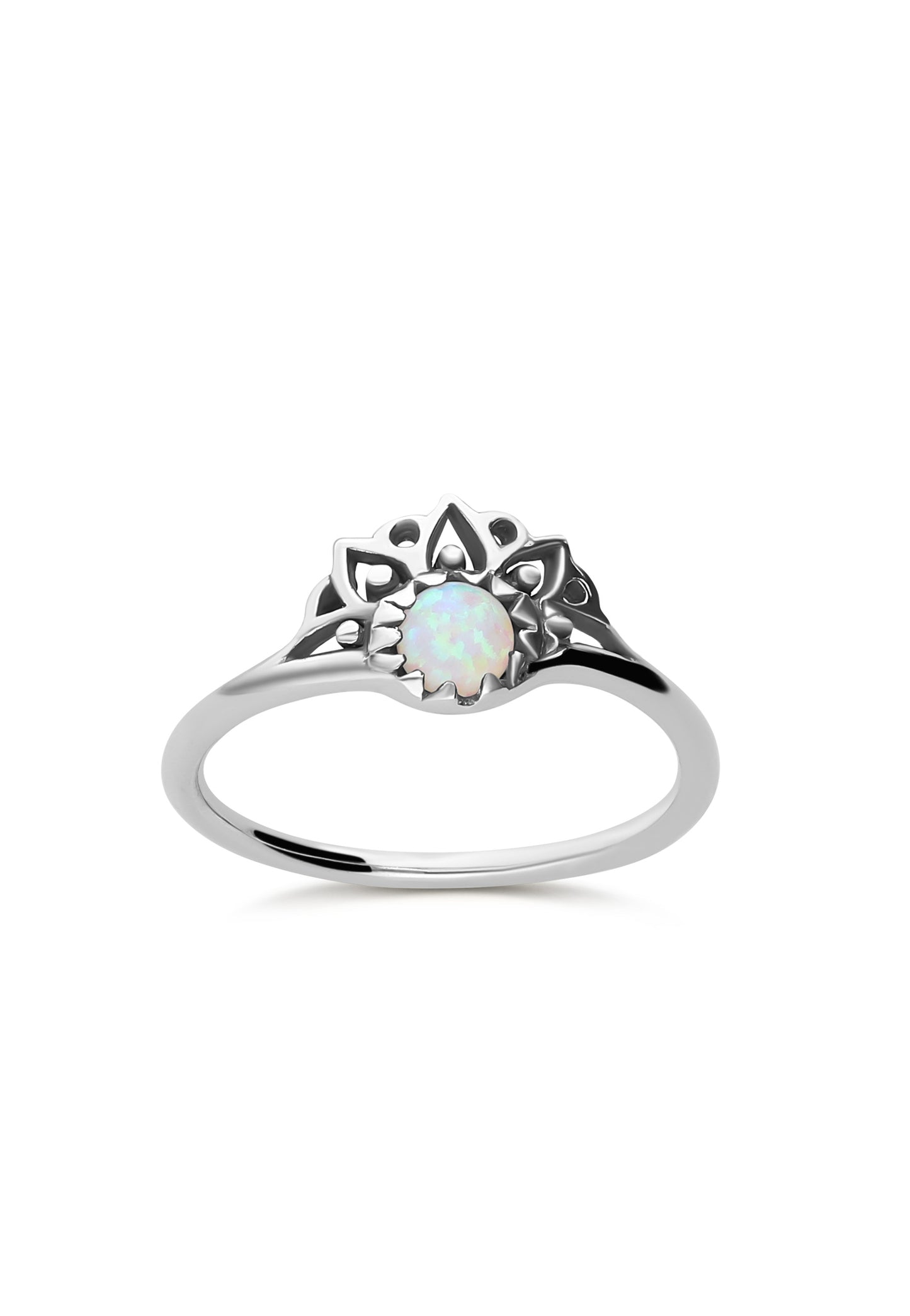 The KUMUD has a opal stone surrounded by a silver semi-circle in the shape of a flower. This style is inspired by petals and mandalas.