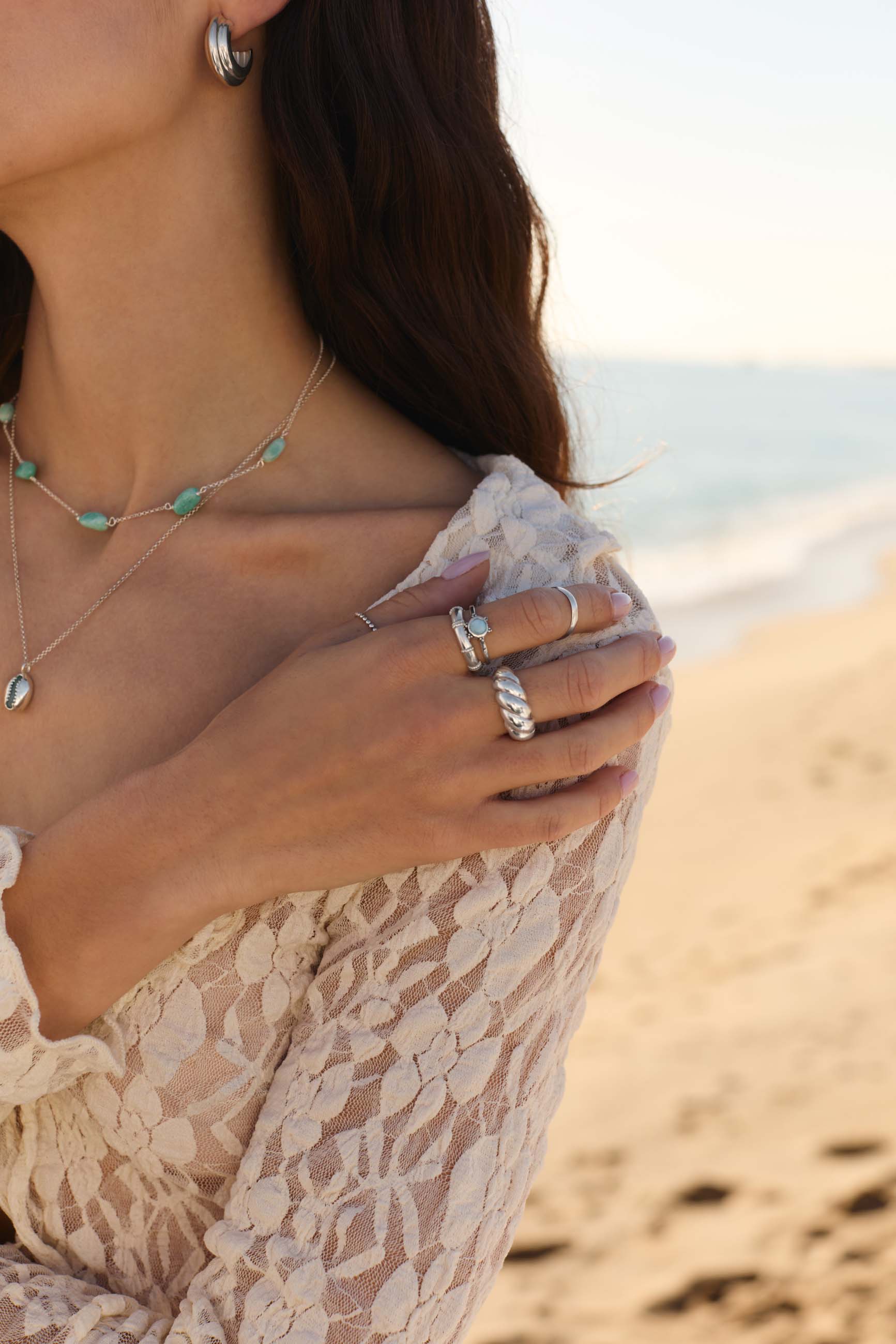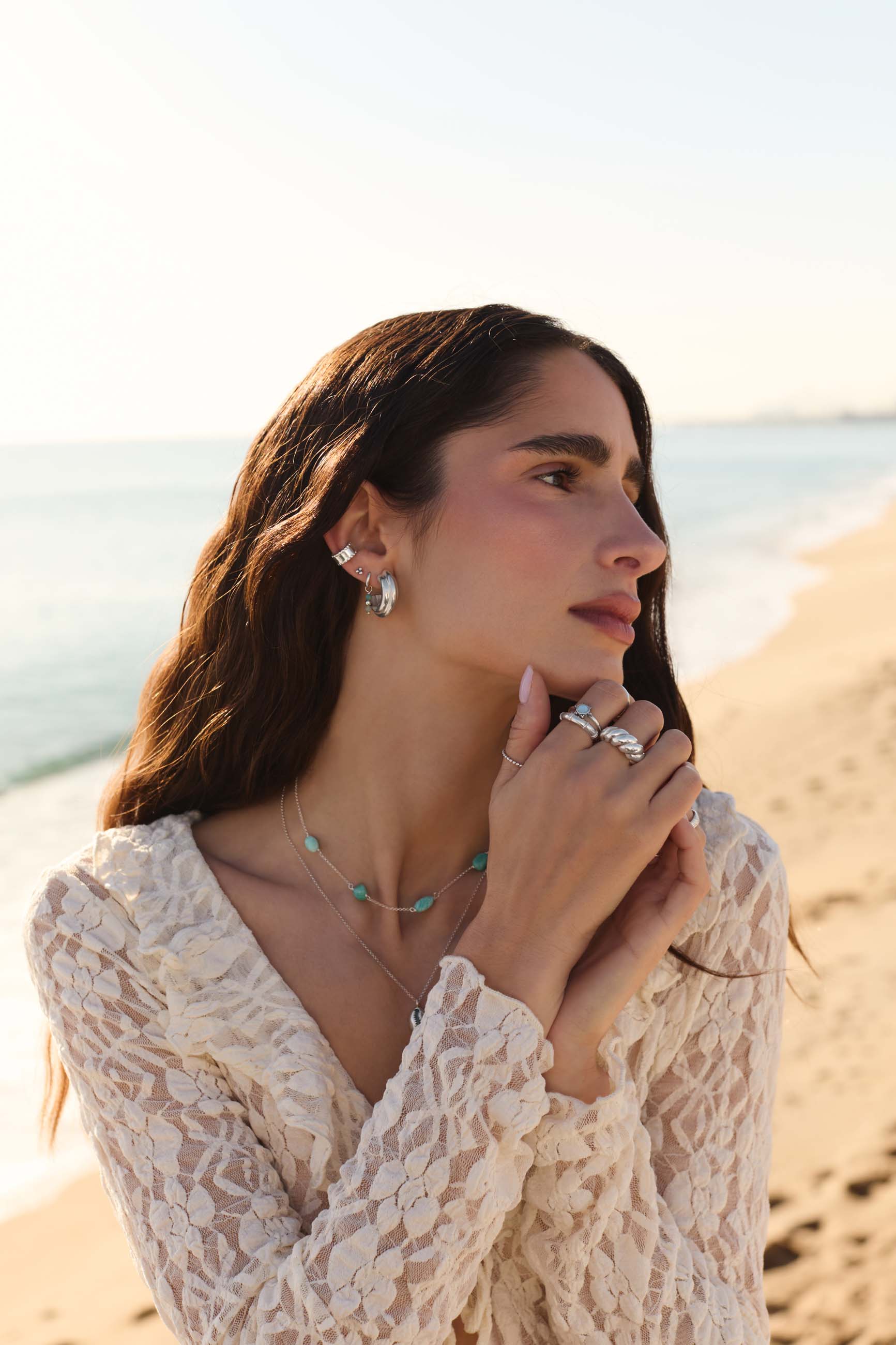 Wear your jewelry frequently and don't worry about everyday activities such as showering, swimming, perfuming or exercising. If the silver darkens, it can be cleaned!