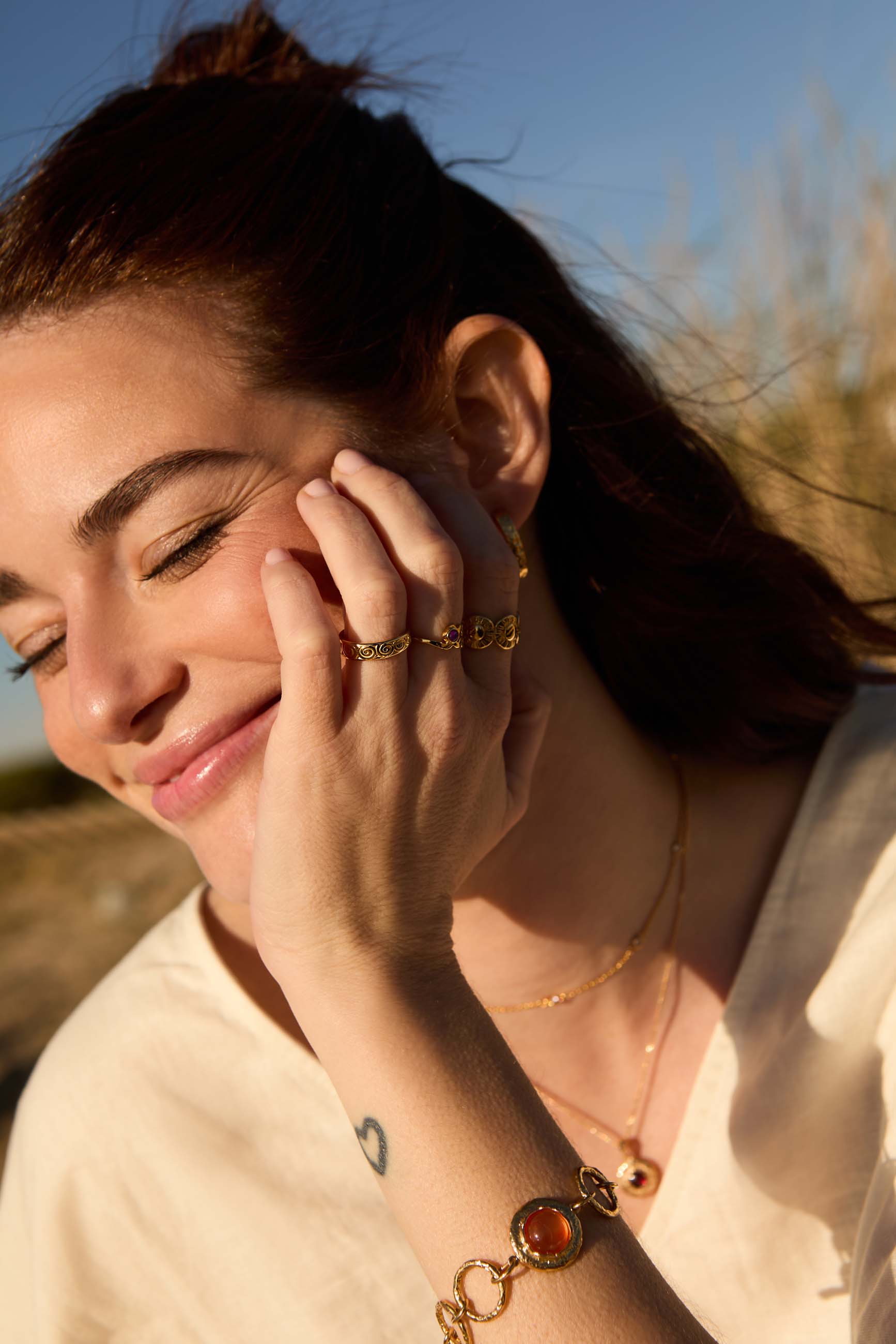 Inspired by the movement of the sea, it features organic shapes and a marine aesthetic that make it a must-have for summer. The golden finish adds warmth and sophistication to any look.