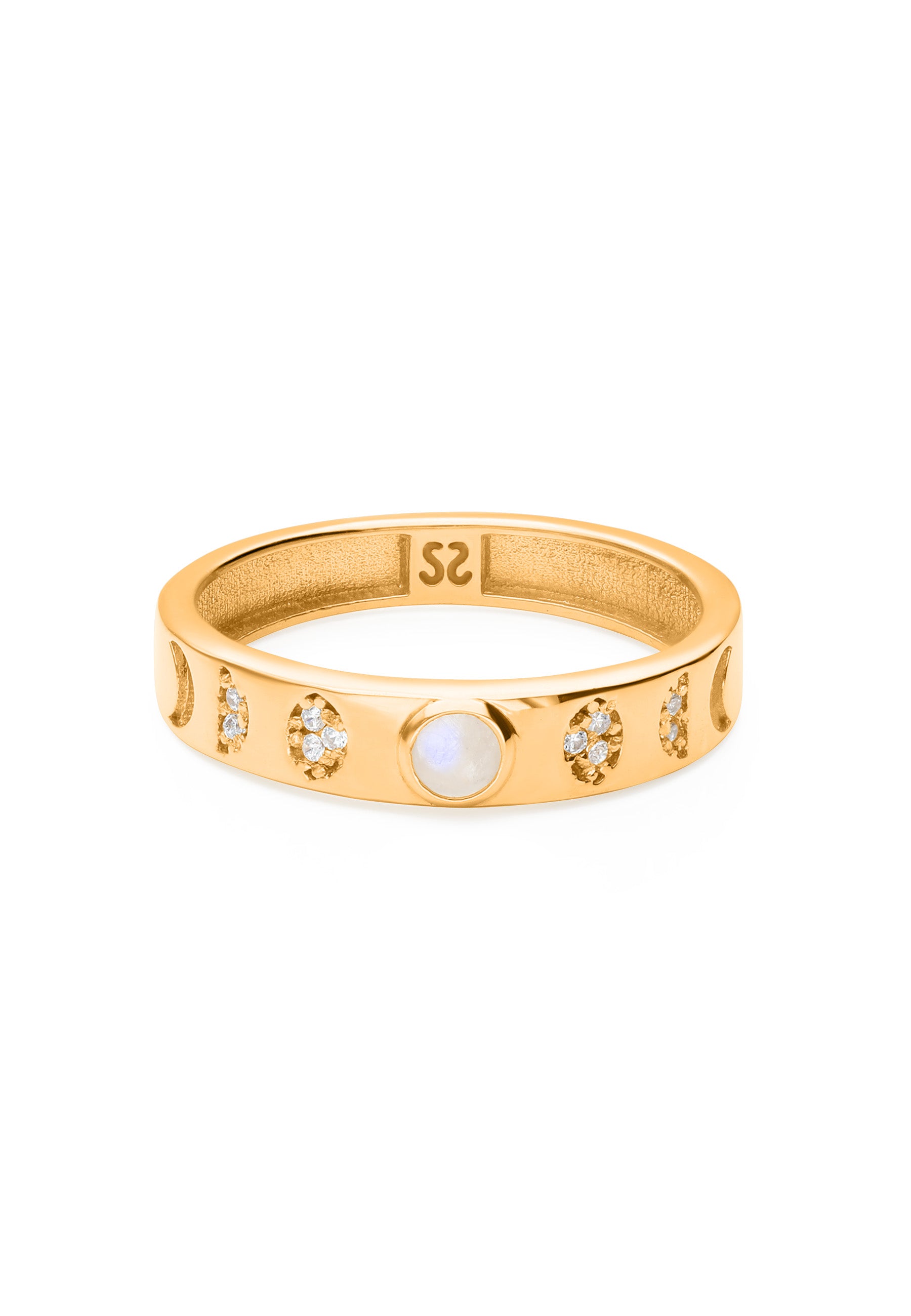 The NAOS ring stands out for its moon cycle with inlaid stones. The half moons are designed with zirconia stone and the moon with moonstone. A combination of stones that results in a unique ring with a lot of light.