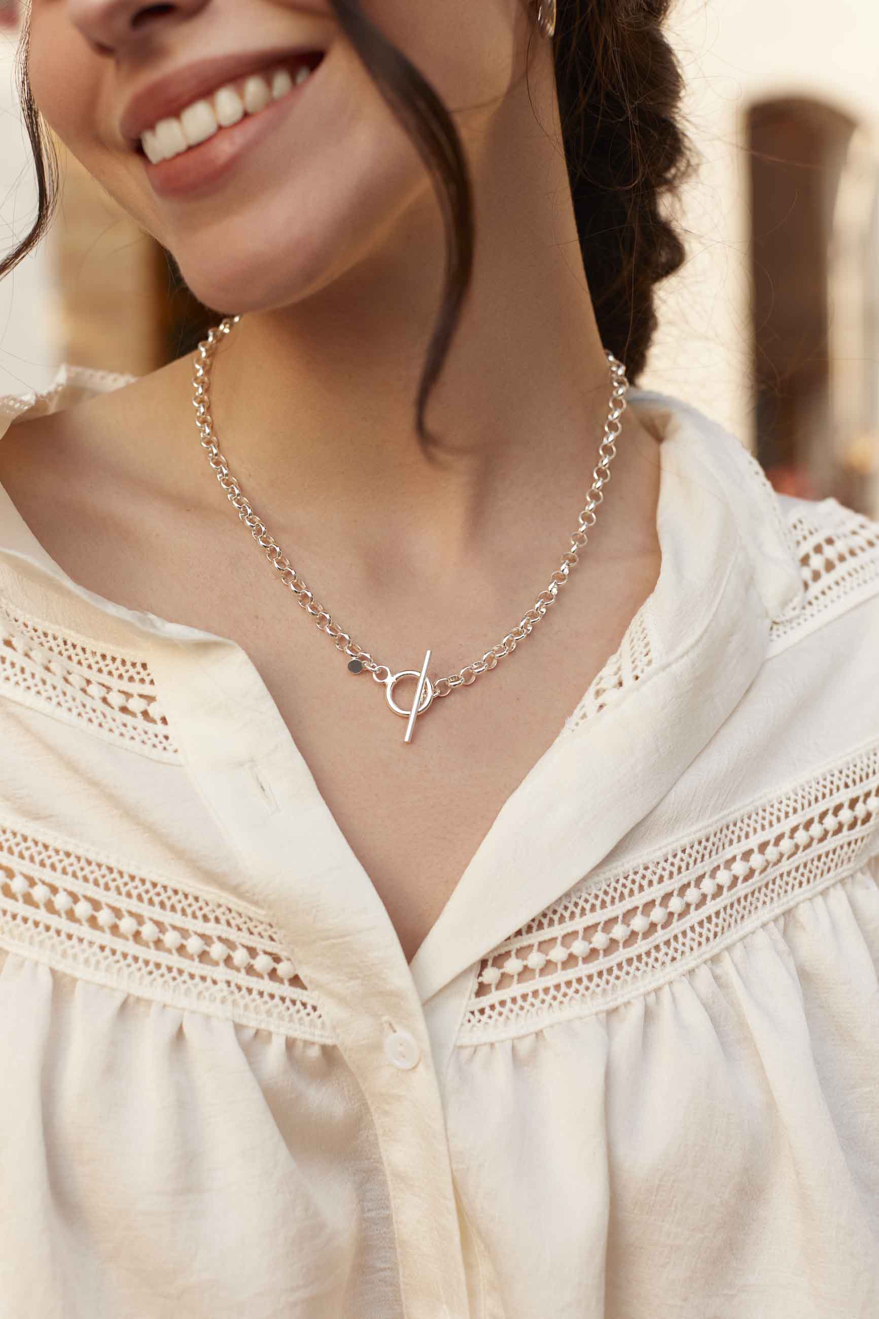The Rolo chain in 925 sterling silver, an essential basic for any jewelry collection. With a length of 45 cm without extender, this chain is designed to fit comfortably and stand out in any occasion.