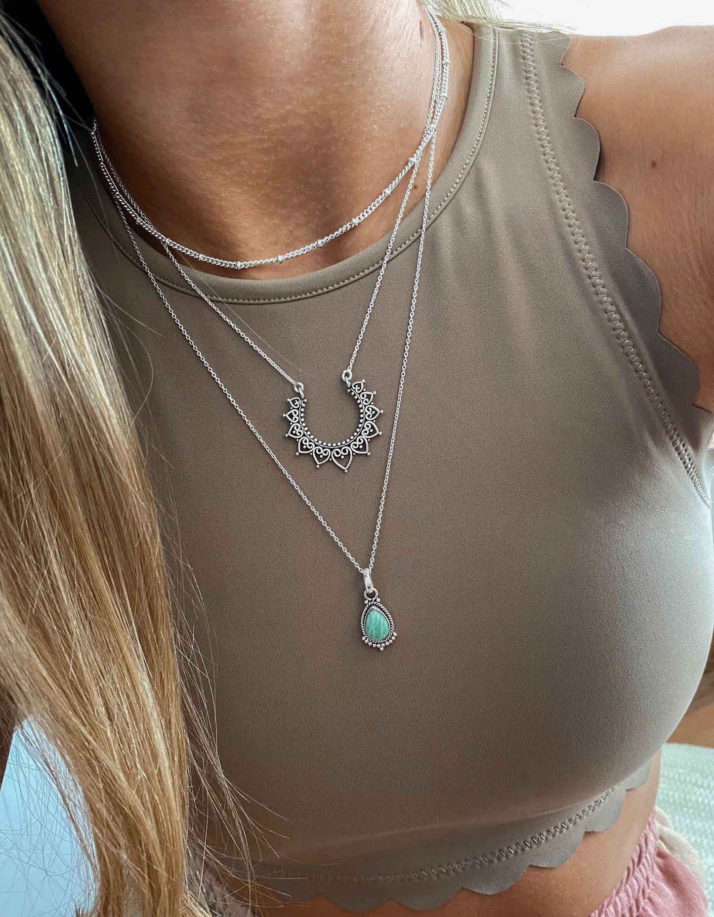 The BINDU is a very original and elegant necklace, handmade with Amazonite 925 Sterling silver. This jewel has a beautiful and intense emerald color.