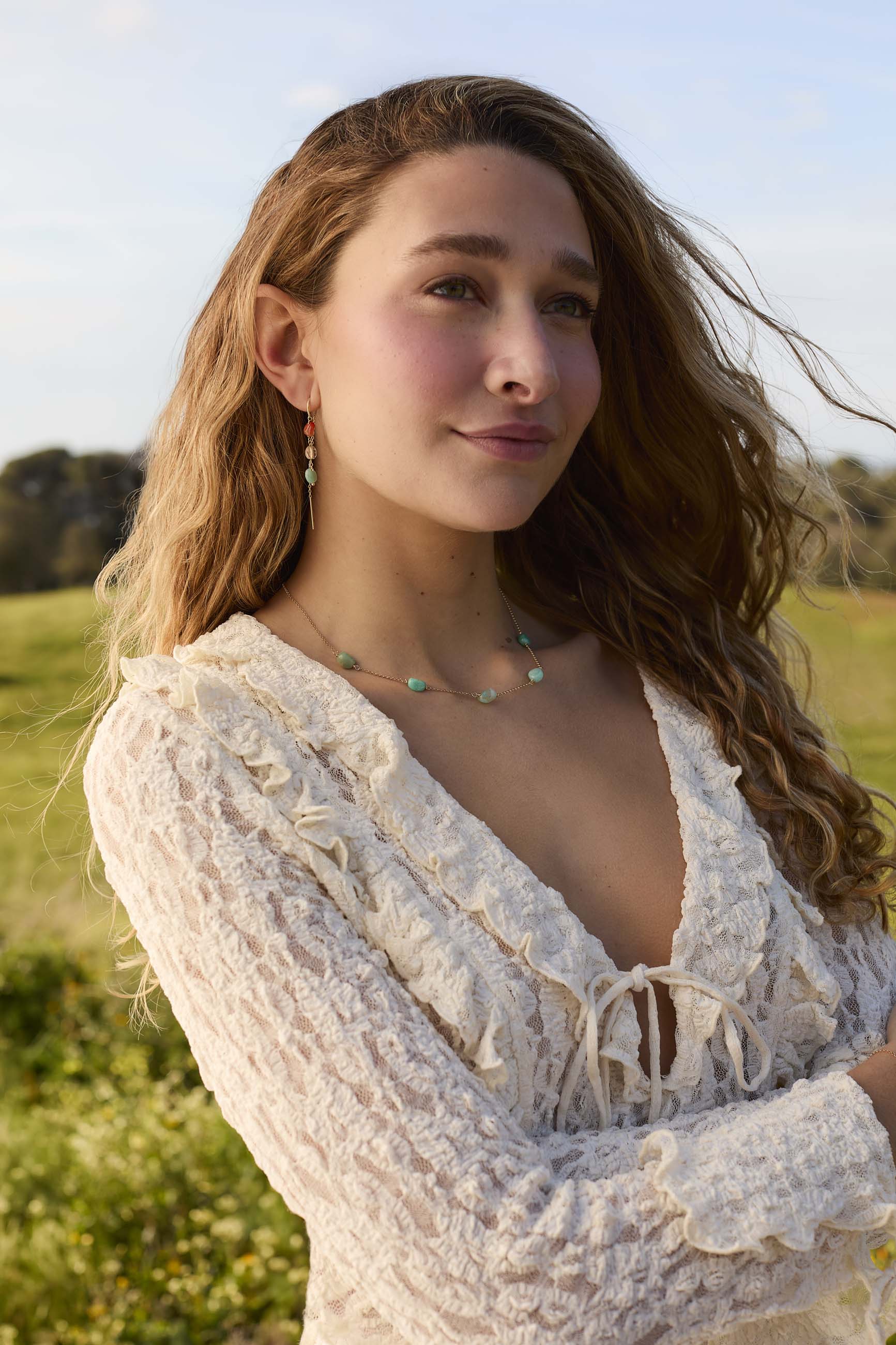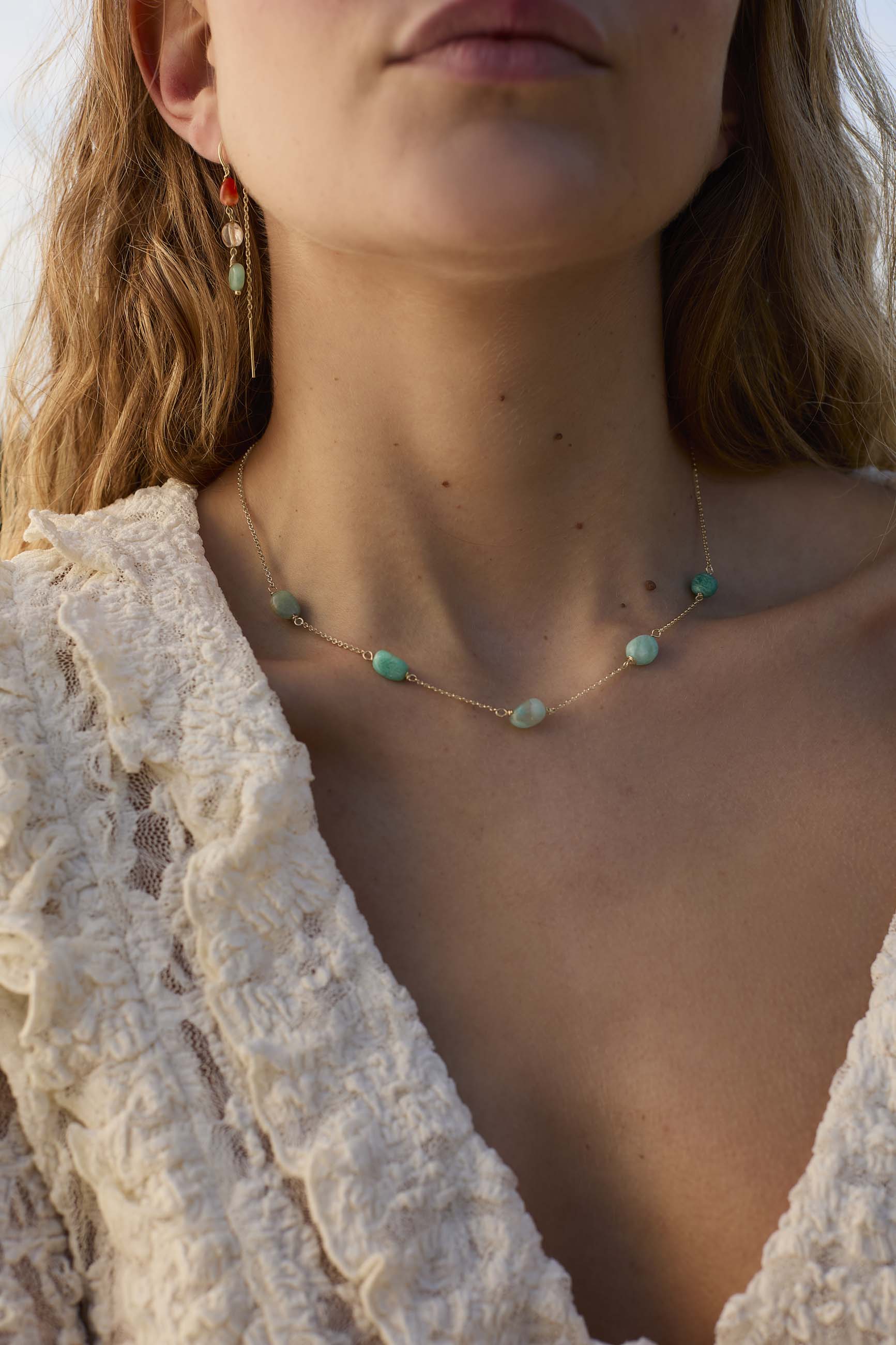 Amazonite, with its beautiful soft green tone, is known for its calming and balancing properties. Each stone is unique in its shape and color, adding a personal and authentic touch to your style, making it the perfect accessory to wear for any occasion, from special events to everyday wear.