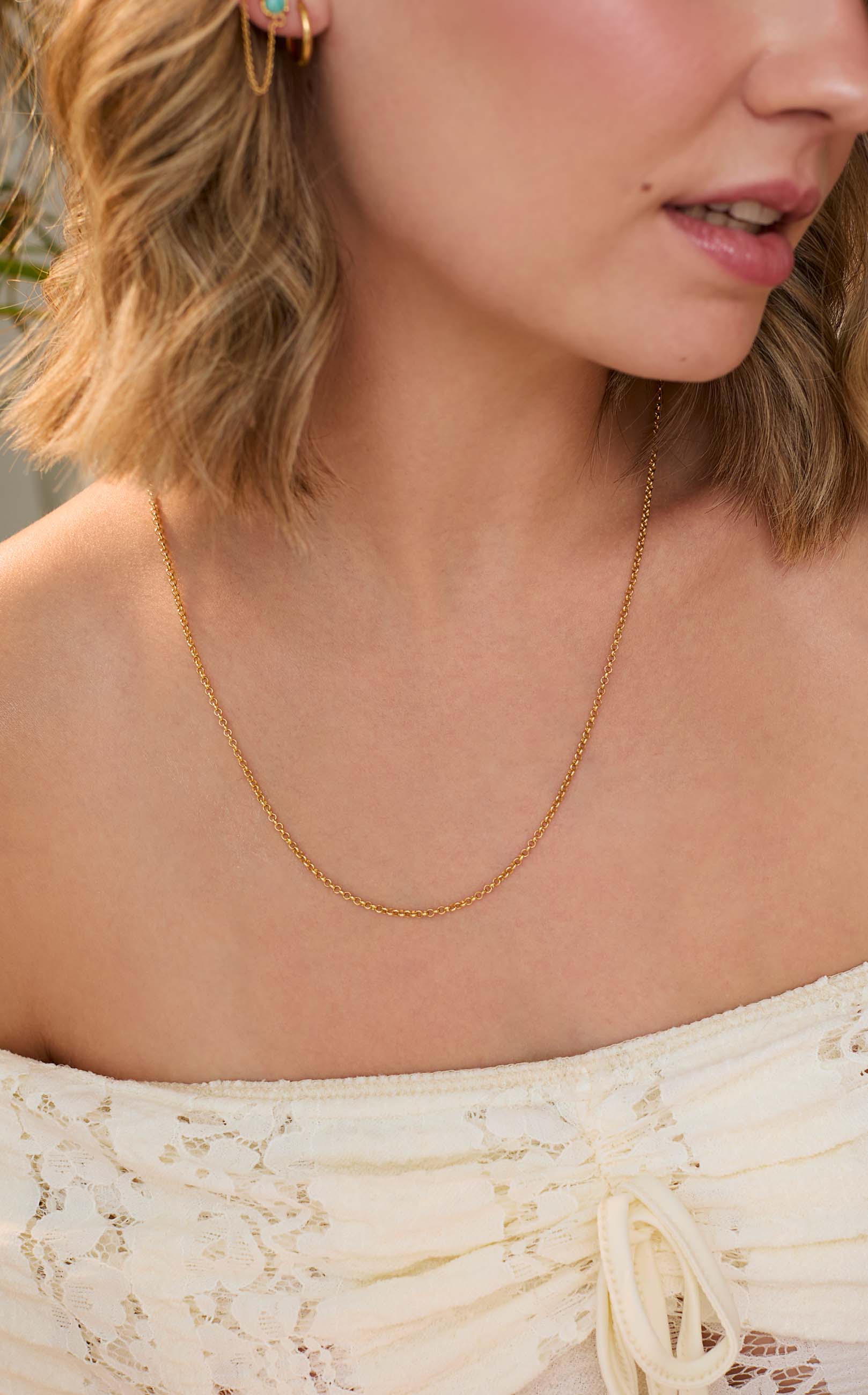 The Rolo chain of 55 cm is an elegant piece crafted in 925 sterling silver with a soft 22k gold plated finish. Its delicate look makes it perfect to wear on its own or paired with a meaningful pendant.