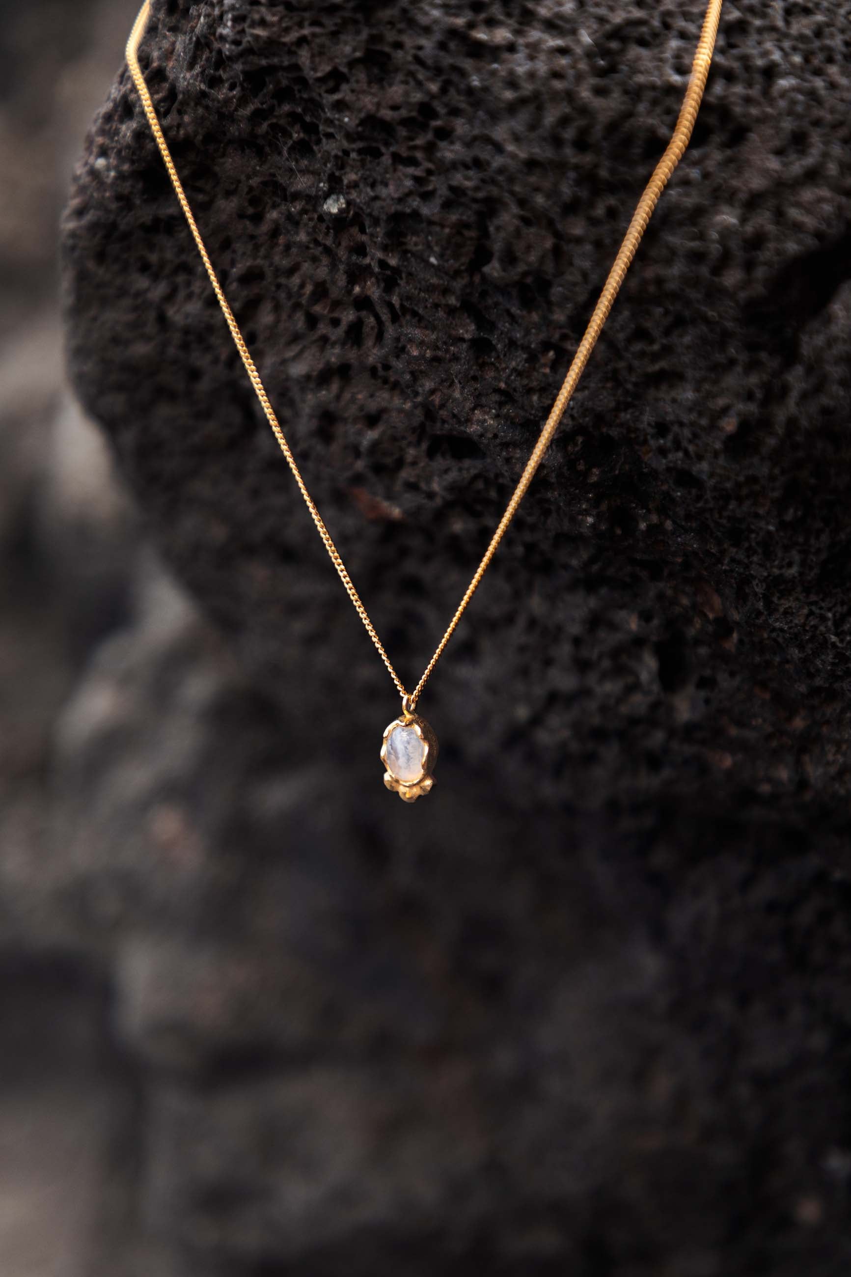 The Akarshan Necklace is made of 925 sterling silver plated with 22k gold and adorned with a natural chalcedony stone. Its mini size makes it a delicate and versatile accessory, perfect for those who prefer discreet jewelry with great meaning. It includes a 40 cm chain and a 5 cm extender for added comfort.