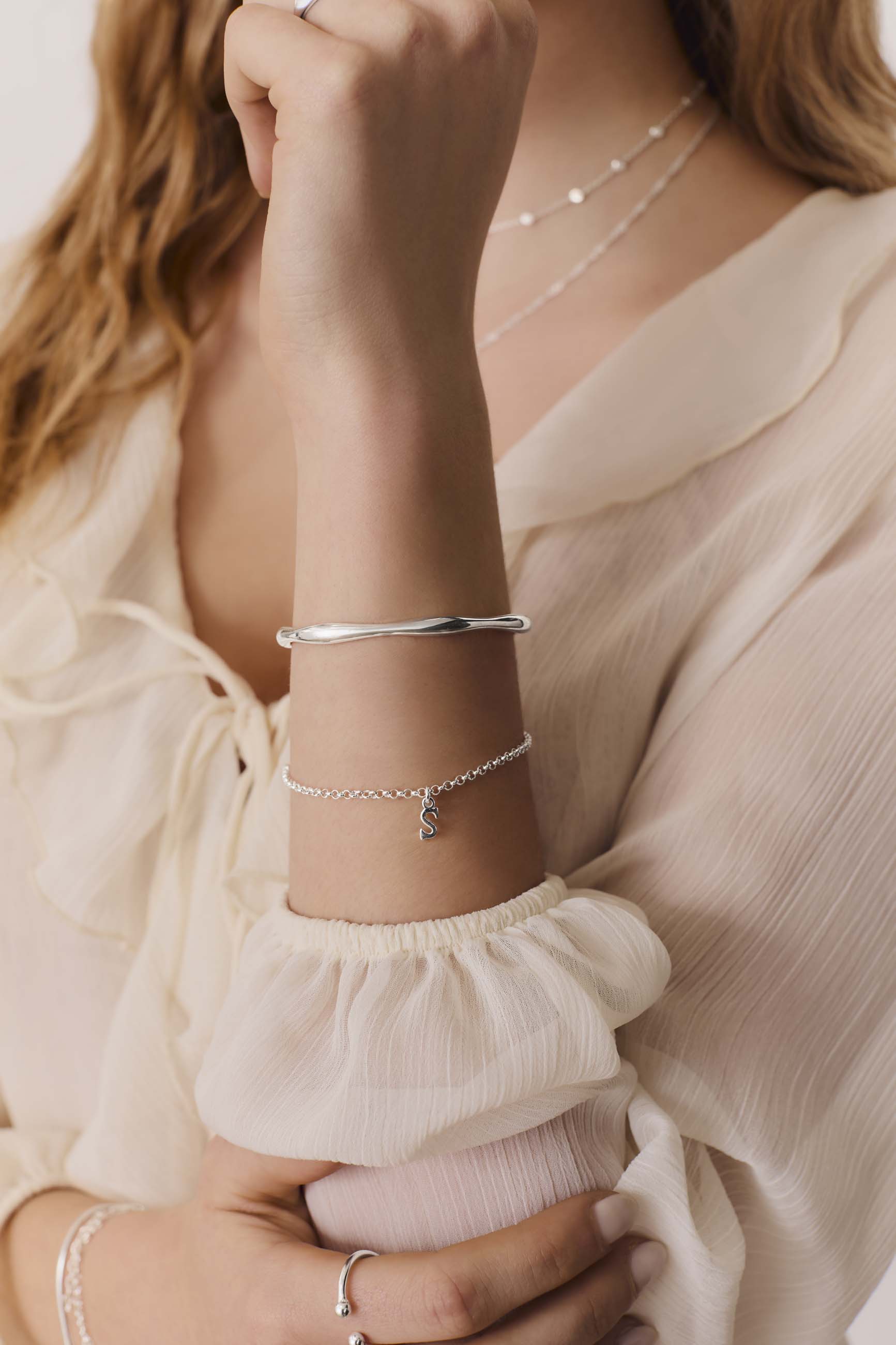 The ADAMYA is a finely handmade sterling silver bracelet, which can be personalized with your initial.