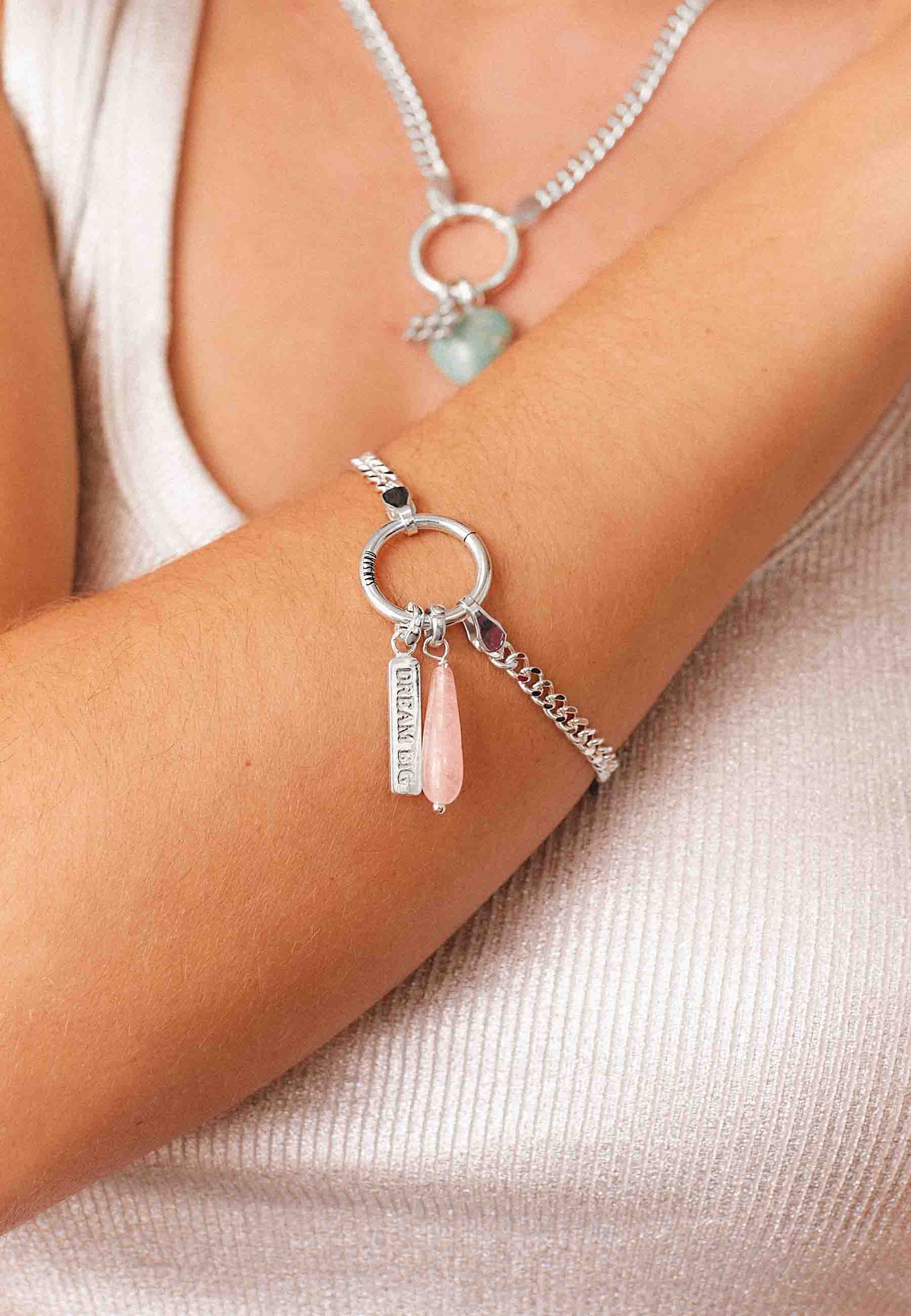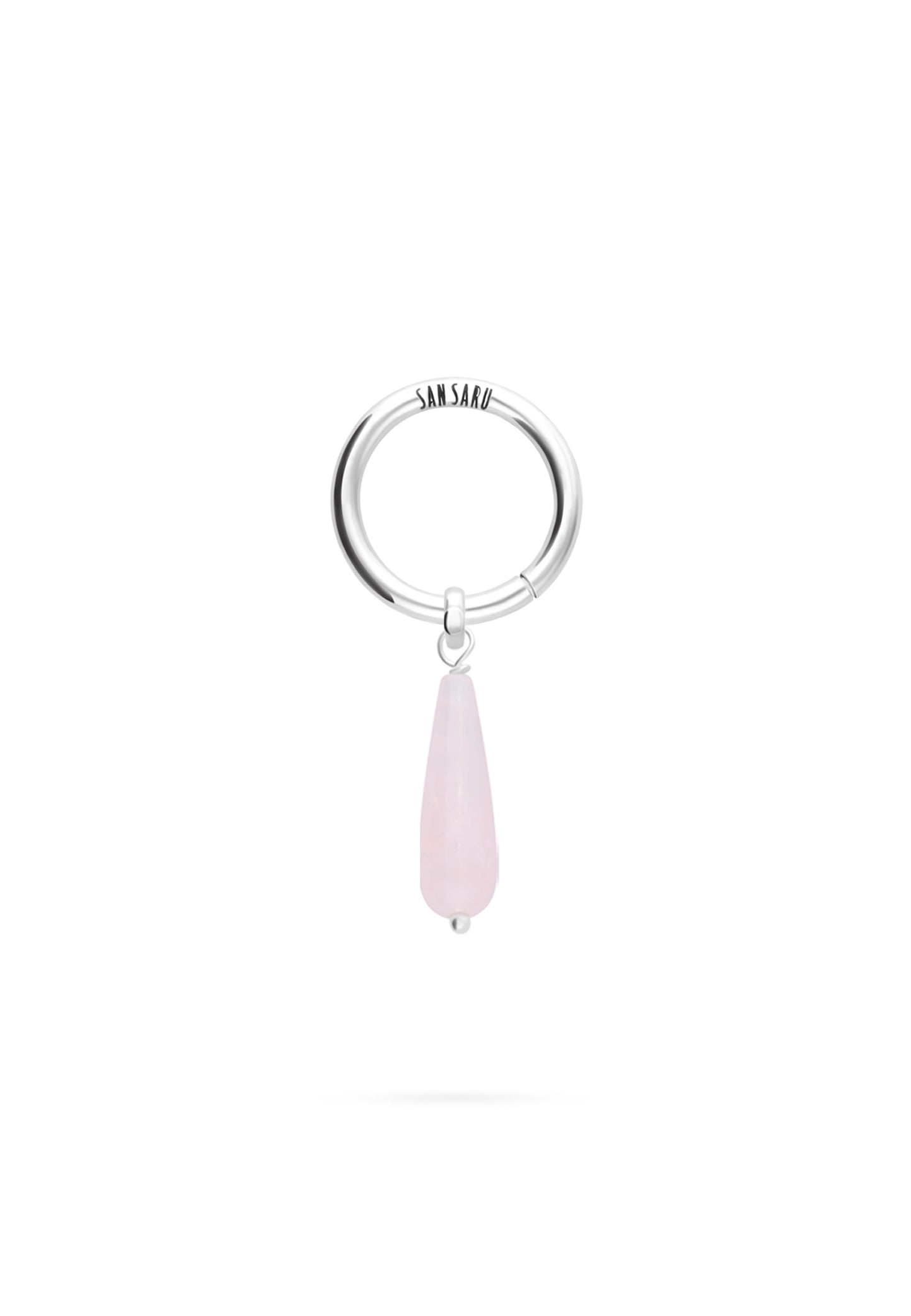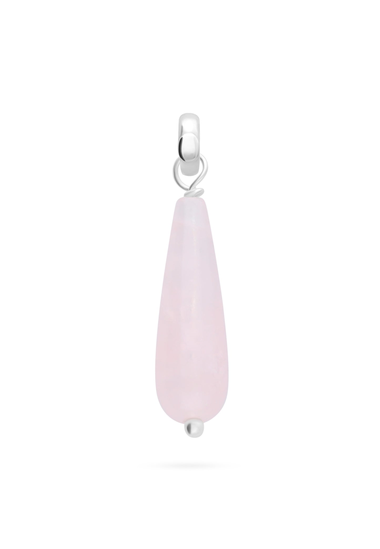 The Kaindee Charm is crafted with rose quartz carved into a rice shape, offering a sophisticated design that adds a romantic touch to your jewelry. Designed to hang from the chains of the INSIGNIA collection, this charm is perfect for personalized combinations.
