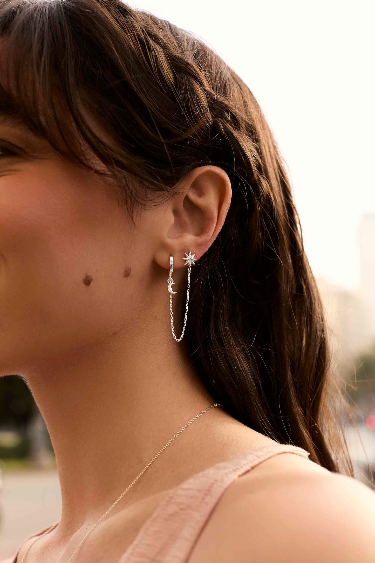 Kaur Chain Earring with Star and Moon